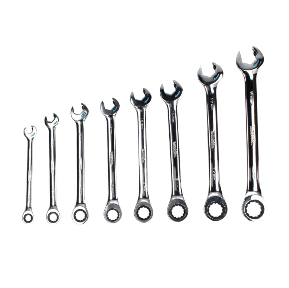 - 8x clés à cliquet ( 8 / 10 / 12 / 13 / 14 / 15 / 17 / 19 mm )