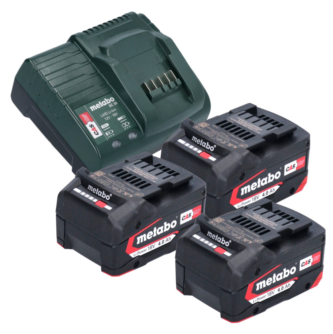 Metabo Basic Set 3x Batteries Li-Power 18 V 4,0 Ah + Chargeur Metabo SC 30 12 - 18 V