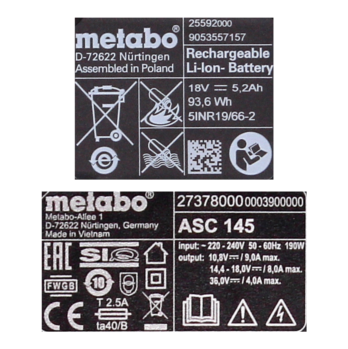 - 1x Metabo chargeur ASC 145 ( 627378000 )