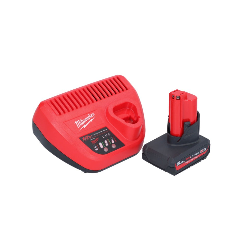 - 1x Milwaukee M12 HB5 Batterie Li-Ion haute puissance 12 V 5,0 Ah / 5000 mAh