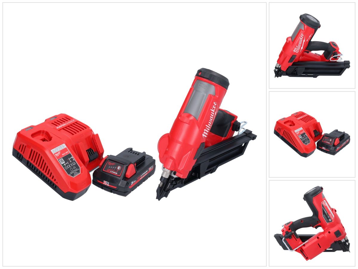Cloueur à batterie Milwaukee M18 FFN-301 18 V 50 - 90 mm sans balais + 1x batterie 3,0 Ah + chargeur