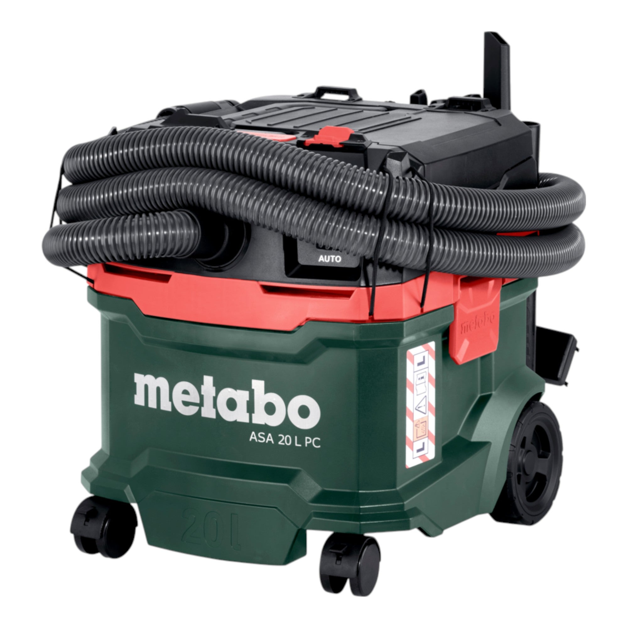L'aspiratore per liquidi e polveri Metabo ASA 20 L PC è un apparecchio compatto e potente, versatile per l'uso professionale in cantiere e in officina. Come aspiratore per liquidi e polveri con omologazione per uso professionale, soddisfa tutti i requisiti per l'uso quotidiano intensivo ed è certificato per la classe di polvere L secondo la norma UE, ideale per la protezione dell'operatore durante il lavoro con polveri nocive per la salute. La funzione PressClean integrata consente un'efficace pulizia manuale del filtro con la semplice pressione di un pulsante, garantendo così una potenza di aspirazione elevata e duratura, soprattutto durante le pause di lavoro. Un sistema di arresto automatico svuota completamente il tubo di aspirazione, mentre l'arresto automatico dell'aspirazione durante l'aspirazione di liquidi impedisce il traboccamento. La presa con accensione/spegnimento automatico consente il collegamento diretto di utensili elettrici, grazie al quale l'aspiratore si accende e si spegne automaticamente con l'utensile, particolarmente pratico durante la levigatura, la foratura o il taglio. Grazie alla dotazione antistatica di serie, si evita l'accumulo di cariche elettrostatiche, a condizione che vengano utilizzati gli accessori appropriati. Particolarmente intuitivo: i metaBOX con accessori o macchine possono essere collegati direttamente all'aspiratore, facilitando così il cambio di posizione. Il trasporto è ulteriormente semplificato dai pratici supporti per cavi e tubi flessibili, da un vano per tubi e ugelli e da un vano accessori integrato con coperchio ribaltabile per piccoli componenti. Gli accessori per aspiratori in dotazione con sistema Quick consentono una rapida conversione per diverse applicazioni, sia a secco che a umido o direttamente sull'elettroutensile.