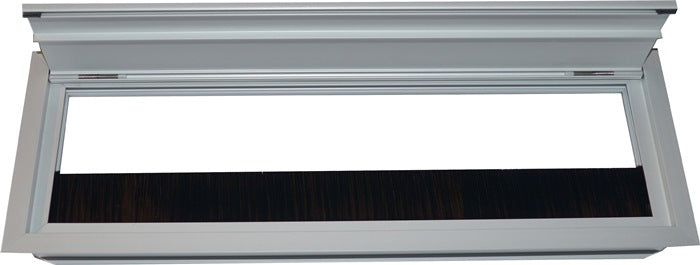 mit geradem Klappdeckel · schwarze Bürstendichtung · Höhe 25mm · Aluminium silber eloxiert · Fräsmaß 103 x 313 mm