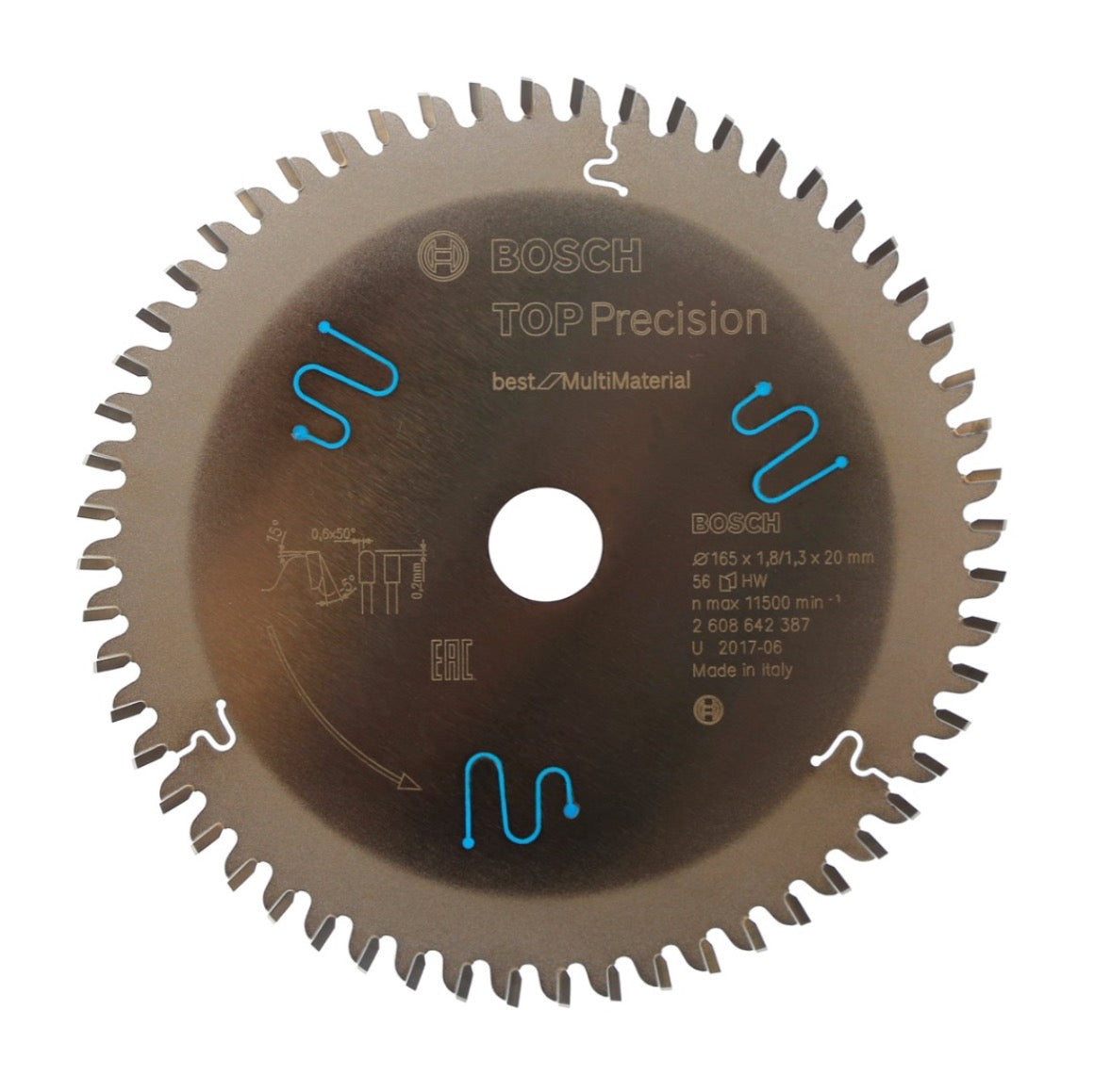 - 1x Bosch Kreissägeblatt Top Precision Best für Multi Material 165 x 20 x 1,8 mm, 56 Zähne ( 2608642387 )
