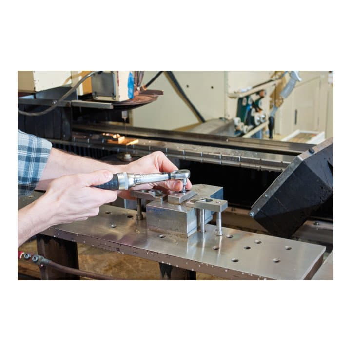 con cricchetto reversibile - per rotazione in senso orario - con sblocco automatico a corsa breve - tattile e acustico al raggiungimento del valore impostato - impostazione del valore di coppia desiderato ruotando l'impugnatura - precisione di sblocco ± 2 % del valore di scala (in direzione di azionamento)