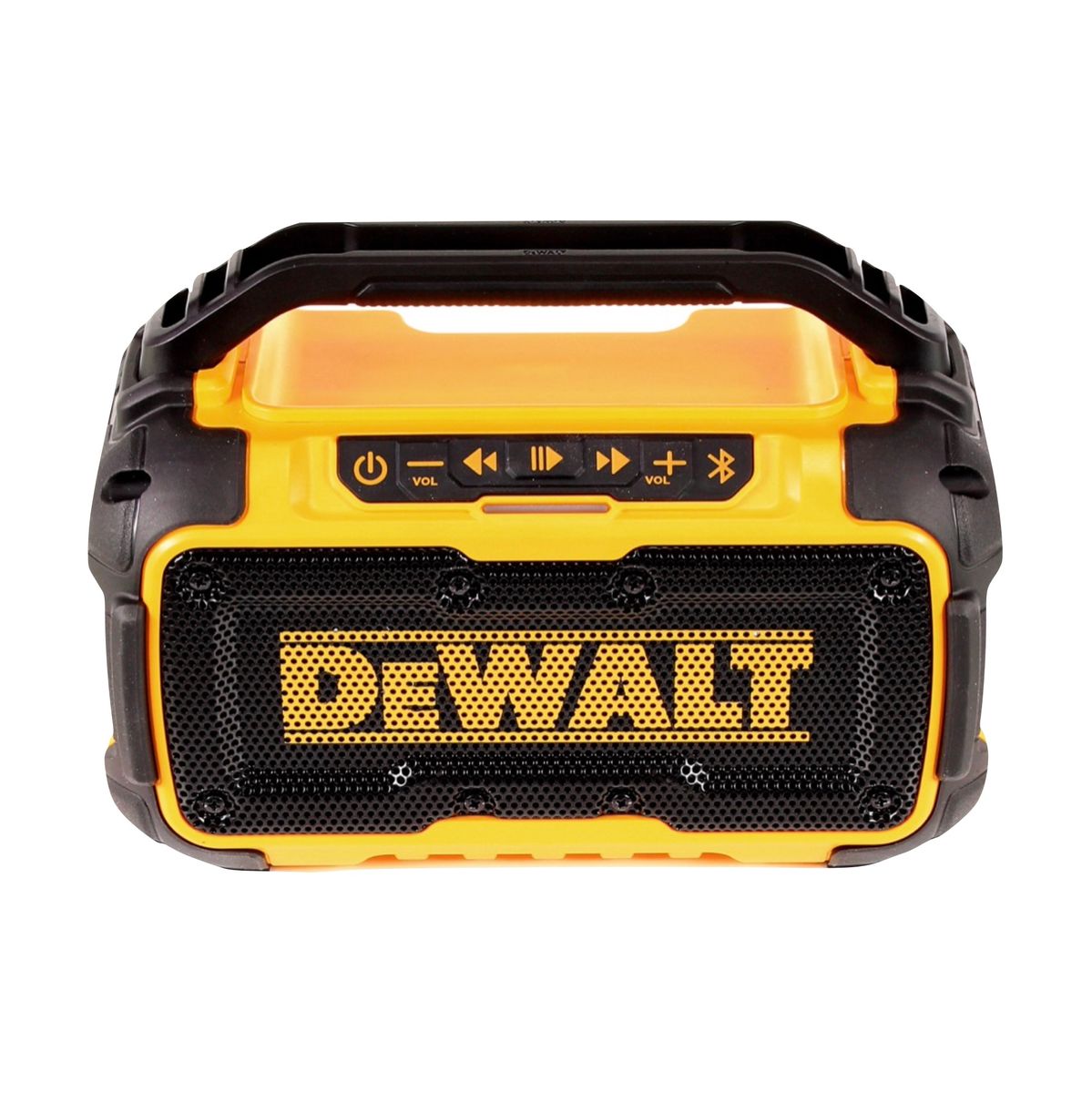 Der praktische DeWalt DCR 011 Akku-Lautsprecher besticht durch eine hohe Lautstärke bei guter Soundqualität. Der Lautsprecher ermöglicht eine Verbindung mit einem Handy mit bis zu 30 Metern Entfernung. Der DCR 011 verfügt über gummierte Kannten und Befehlsknöpfe, sodass mögliche Schäden am Gerät minimiert werden. Es kann mit allen gängigen DeWalt Einschub-Akkus mit 10,8, 14,4 und 18 V betrieben werden. An der Seite ist ein USB-Anschluss angebracht, mit dem kleinere Elektronikgeräte wie Handys oder MP3-Player aufgeladen werden können.