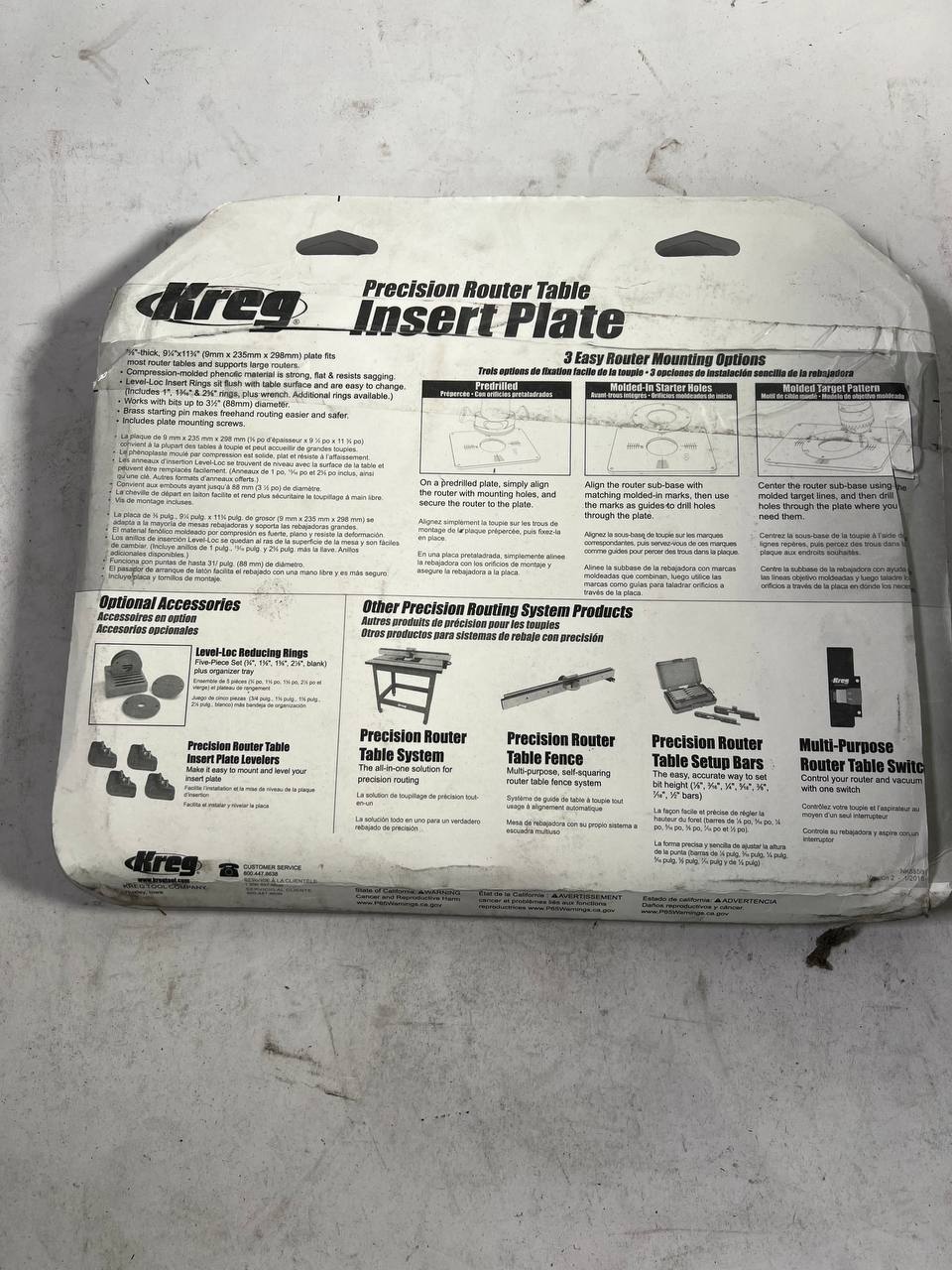 La piastra d'inserzione per tavoli da router KREG PRS4034 è per l'autocostruzione di basi per fresatrici. La plastica termoindurente offre un'alta resistenza e flessibilità come materiale per lastre, il che la rende resistente agli urti e alla rottura. I fori della piastra di inserimento sono adatti alle fresatrici Triton MOF001 e TRA001. Gli anelli di riduzione sono dotati di una chiusura a baionetta per un fissaggio facile, rapido e saldo. La piastra d'inserzione è adatta a frese fino a un diametro massimo di 80 mm senza anello d'inserzione.