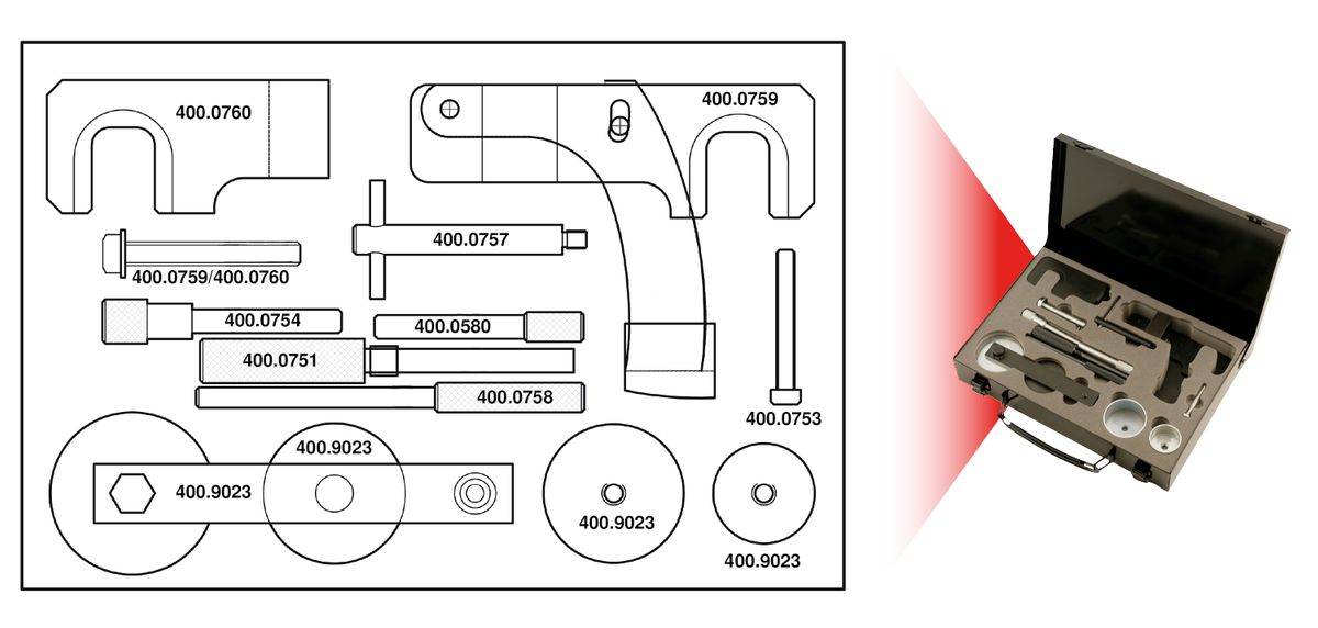 KS TOOLS Serie di utensili per messa in fase motore per Nissan / Opel / Renault, 15 pz ( 400.0750 )