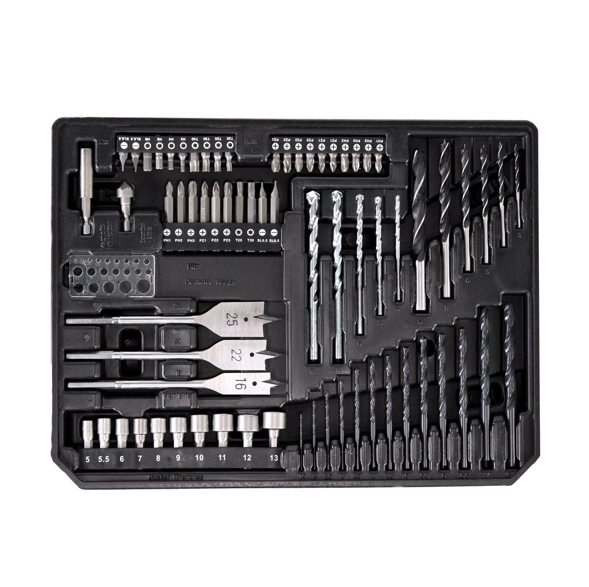 - 20x Bit 25 mm ( PH1 / PH2 / PZ1 / PZ2 / PZ3 / PZ3 / T20 / T2  / T30 / T40 / H3 / H4 / H5 / H6 / SL5,5 / SL6,5 )