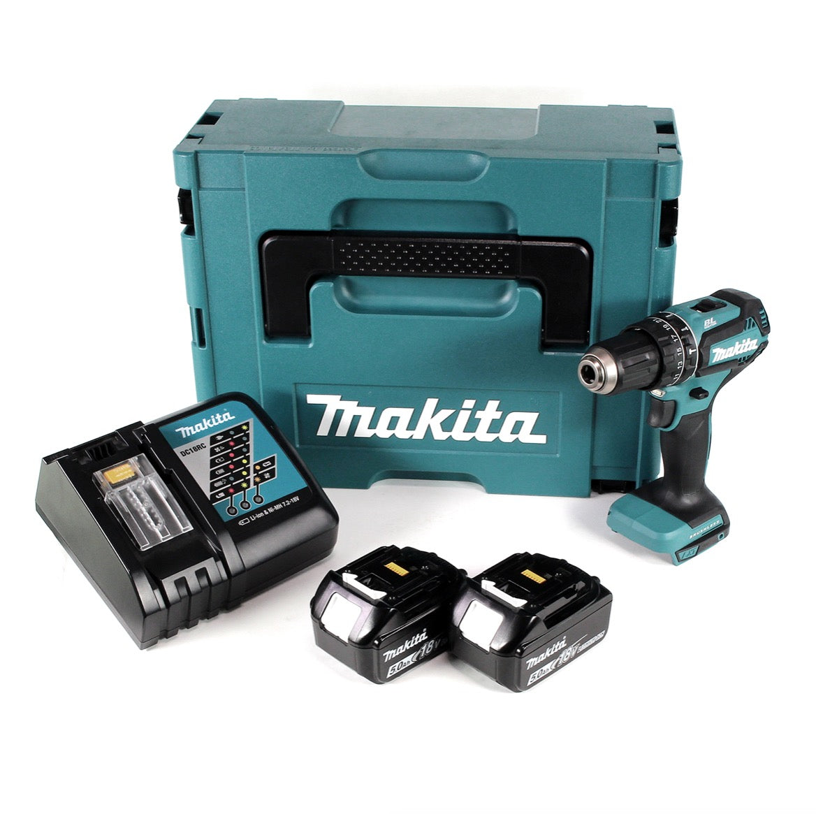Makita DHP 485 RTJ 18 V Trapano avvitatore a percussione a batteria in valigetta Makpac + 2x Batterie 5,0 Ah + Caricabatterie rapido DC18RC