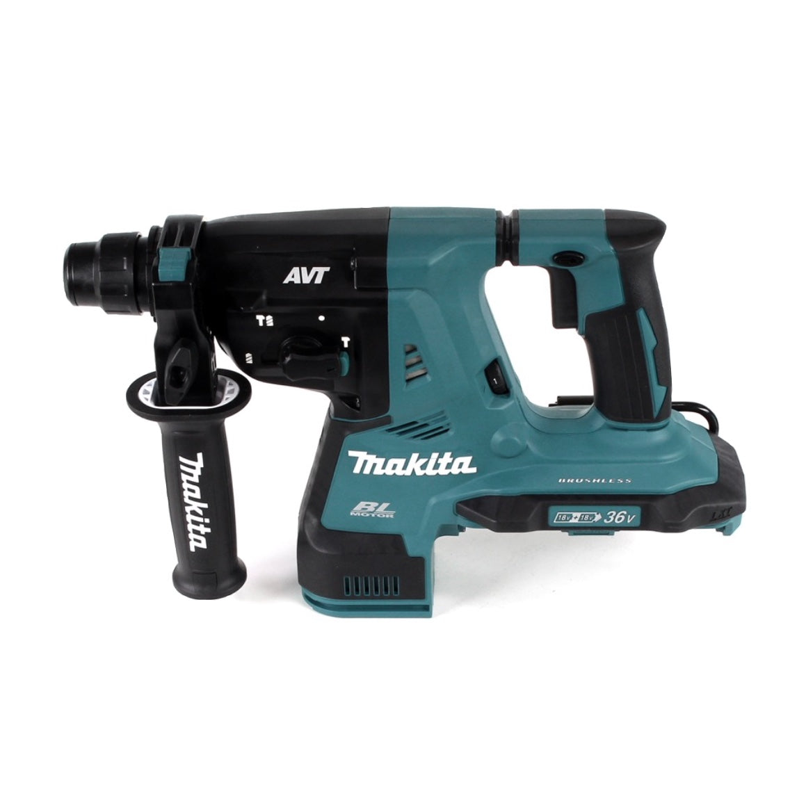 Die DHR 280 ZJ ist ein leistungsstarker Akku Bohrhammer aus dem Hause Makita. Der Bohrhammer wird mit zwei Makita 18 Volt Akkus betrieben, um Aufgaben mit höchsten Ansprüchen gerecht zu werden. Das Gerät verfügt über einen bürstenlosen Motor, was sich deutlich positiv auf die Lebensdauer und Ausdauer des Geräts auswirkt. Eine Rutschkupplung schützt den Benutzer, falls der Bohrhammer beim Arbeiten blockieren sollte. Zusätzlich hat Makita Ihre Xtreme Protect Technology verbaut, wodurch ein optimaler Schutz gegen Staub und Spritzwasser gewährleistet wird. Das macht den Bohrer äußerst widerstandsfähig und langlebig. Für hohen Komfort sorgt die Anti-Vibrations-Technologie, diese wirkt Ermüdungserscheinungen durch Vibrationsbelastung entgegen. Zusätzlich ist im Gerät eine starke LED, die den Arbeitsbereich optimal ausleuchtet und eine Warnanzeige für niedrige Akku-Kapazität.