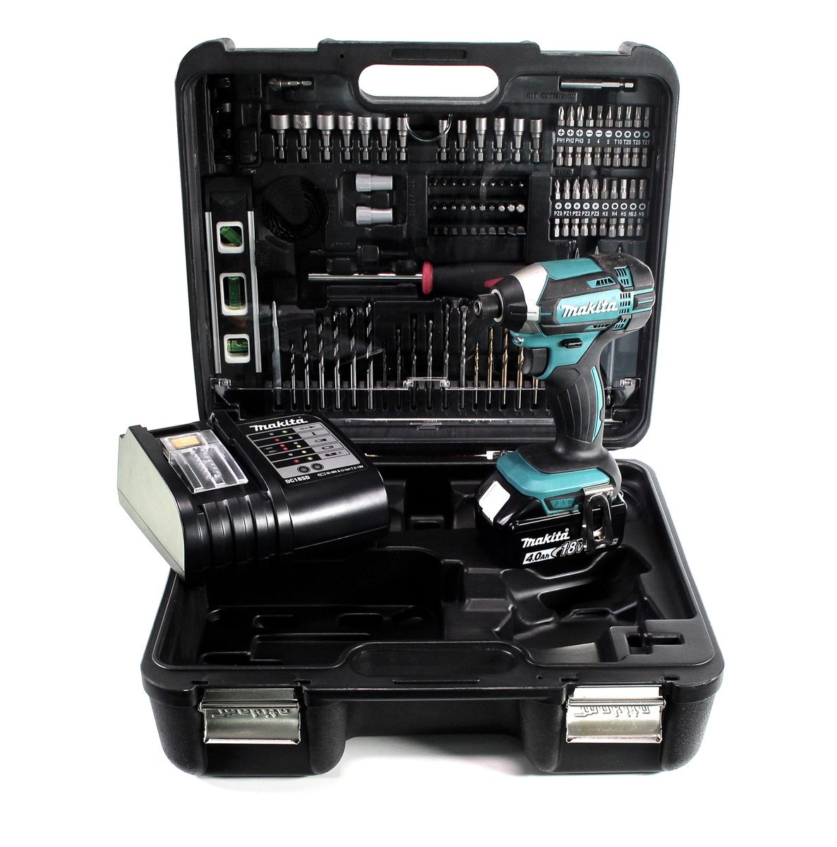 Makita DTD 152 SMTK Akku Schlagschrauber 18 V 165 Nm + 1x Akku 4,0 Ah + Ladegerät + 101 tlg. Zubehörset + Koffer