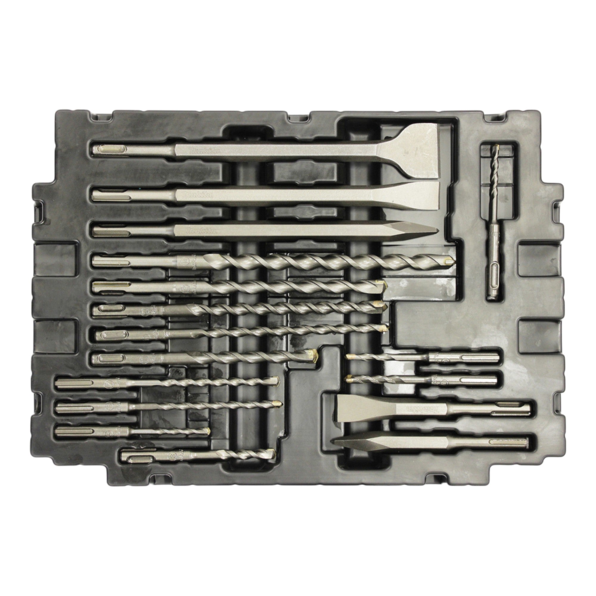 Il set da 17 pezzi E-17790 è l'aggiunta perfetta alla vostra collezione di utensili. Contiene 12 punte per trapano a percussione e 5 scalpelli, tutti dotati di supporto SDS-PLUS. In questo modo è possibile sostituire gli accessori in modo rapido e senza attrezzi. Il set viene fornito in una pratica valigetta MAKPAC, che garantisce una conservazione sicura. Un secondo inserto della valigetta offre ulteriore spazio e garantisce una chiara organizzazione degli accessori aggiuntivi.