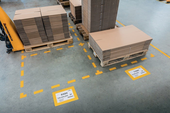 Finestra autoadesiva per l'etichettatura del pavimento con inserti di carta A4 - Rimovibile - Facile da applicare: La carta viene posizionata sotto la tasca di etichettatura e rimane protetta dall'adesivo integrale - Utilizzabile in formato verticale e orizzontale