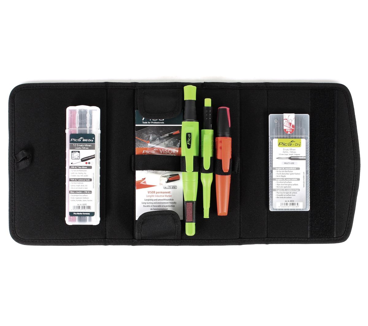 Il Pica Master Set è un set pratico e compatto. È perfetto per carpentieri e falegnami. Il set si caratterizza per la sua duratac di vita utile e la facilità d'uso. Il set può essere riempito con diversi pezzi di ricambio per diversi scopi e può quindi essere utilizzato universalmente. Le mine di ricarica sono ideali per la marcatura e sono caratterizzate da una performance di marcatura estremamente lunga.