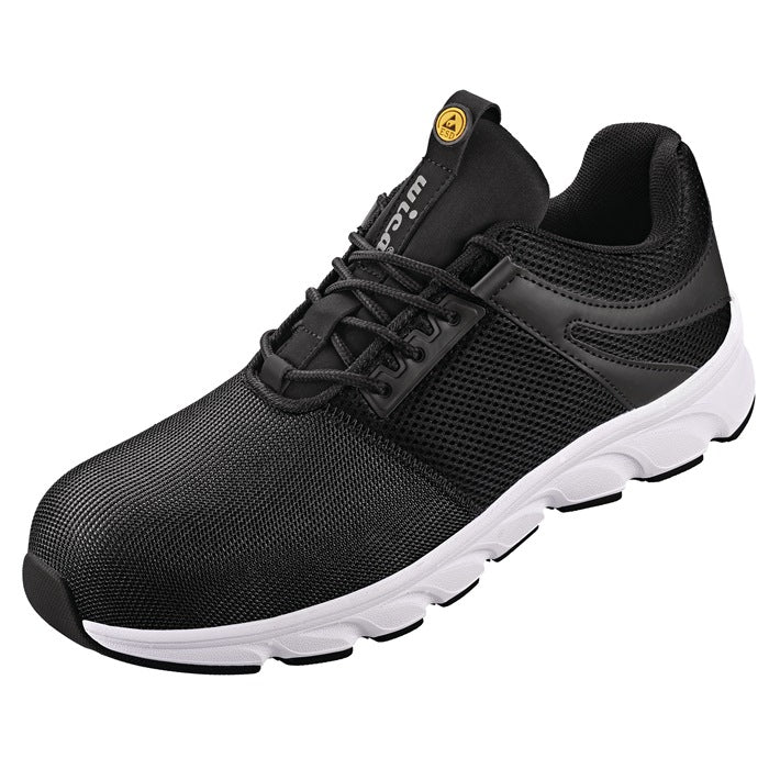 in conformità alla norma EN ISO 20345 - S1P ESD SRA - larghezza scarpa: 10,5 - tomaia in materiale tessile - bordo del gambale ergonomico e imbottito in materiale sintetico - linguetta cucita e imbottita in materiale tessile - chiusura con occhielli elastici in tessuto - plantare anatomico estraibile - puntale in fibra di vetro e intersuola in tessuto antiperforazione - suola in EVA/gomma antistatica, resistente agli oli e agli acidi, antiscivolo e superleggera - suola sportiva - completamente priva di metallo - campo d'impiego: magazzino, spedizioni, industria ecc. disponibile anche dalla taglia 36 alla taglia 48 su richiesta