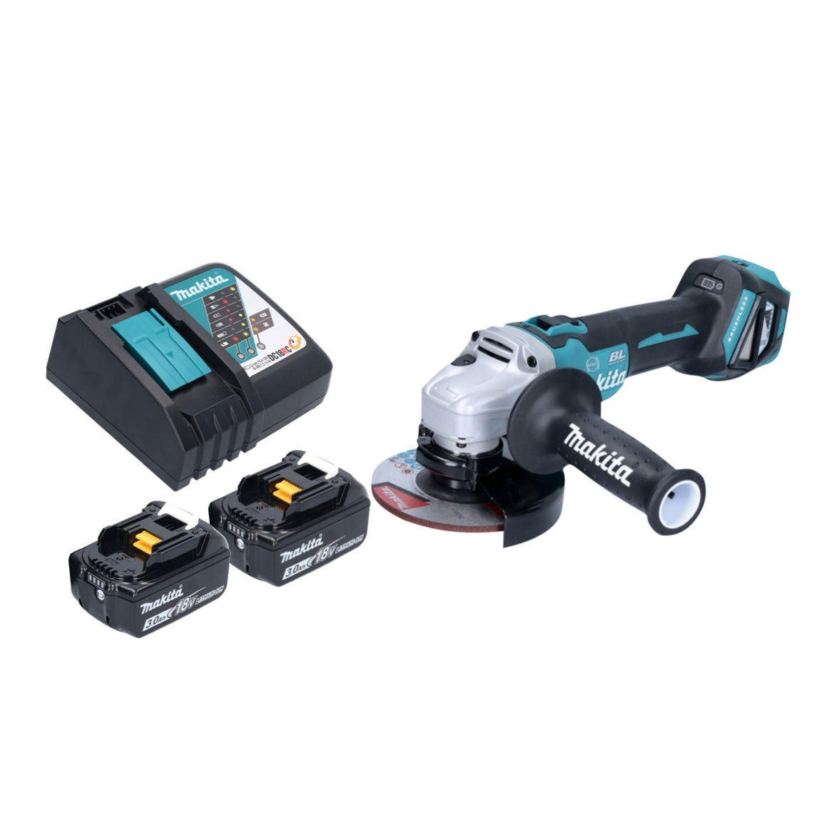 Smerigliatrice angolare a batteria Makita DGA 513 RF 18 V 125 mm brushless + 2x batteria ricaricabile 3,0 Ah + caricabatterie