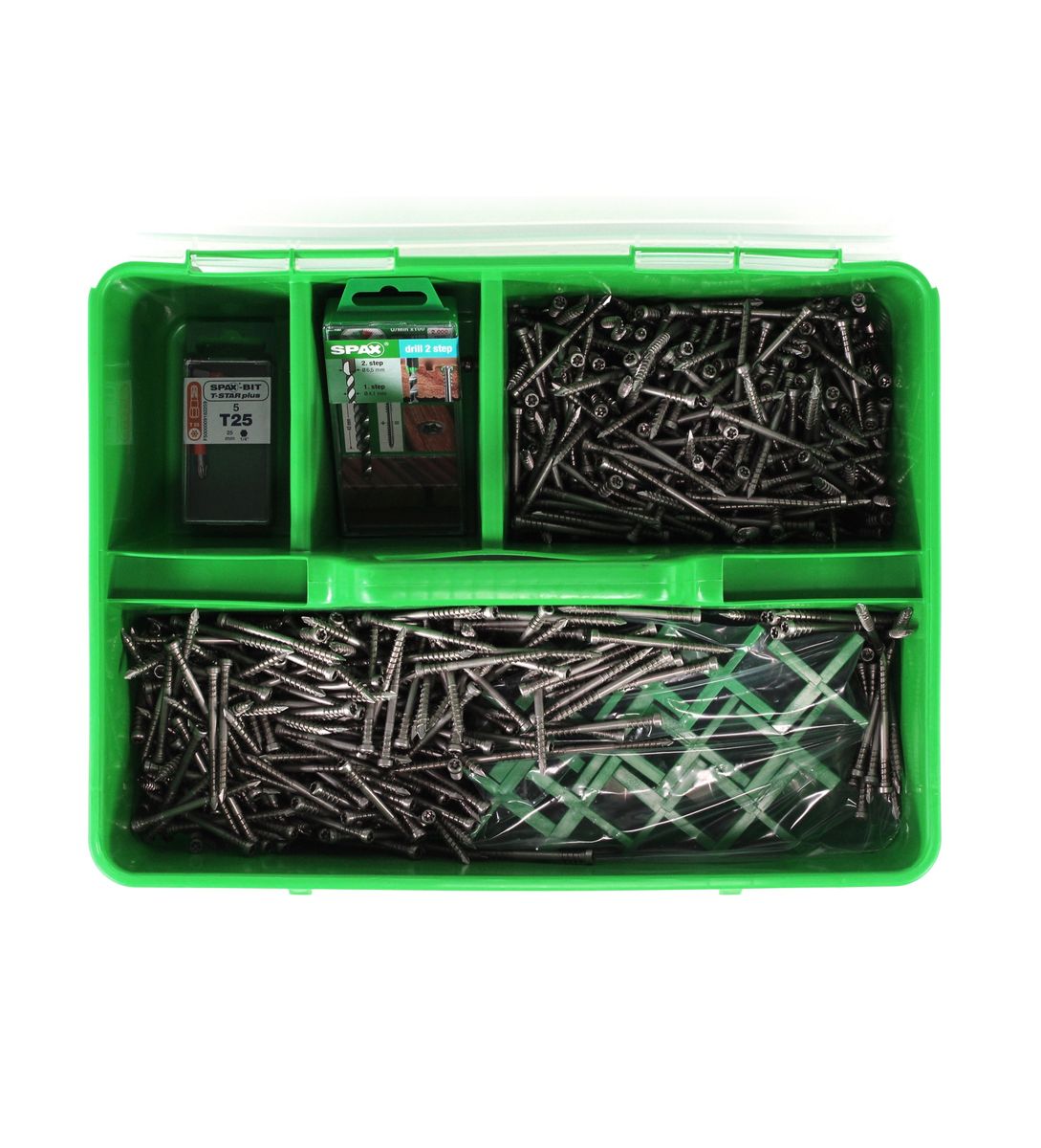 SPAX Green Box Terrasse 5 x 60 Schrauben Set Edelstahl 25-28 m² ( 5000009030009 ) Zylinderkopf Torx T-STAR plus T25 CUT