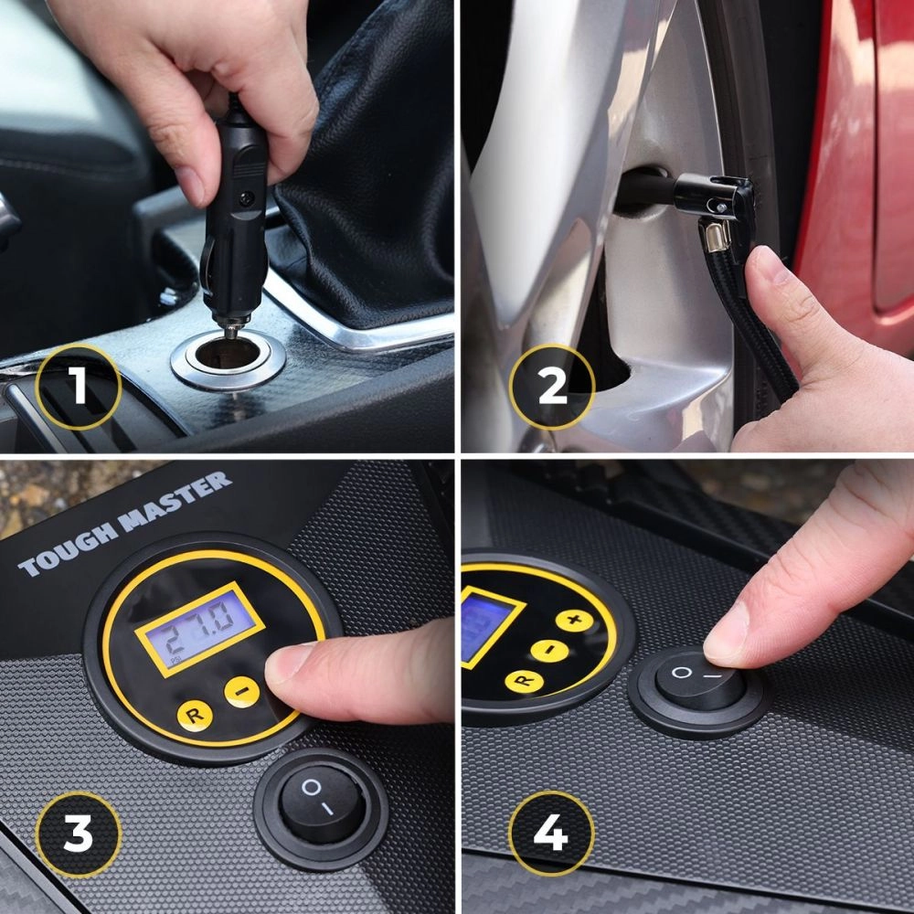 - 1x TOUGH MASTER Digitaler Reifenfüller 12 V, 110 W