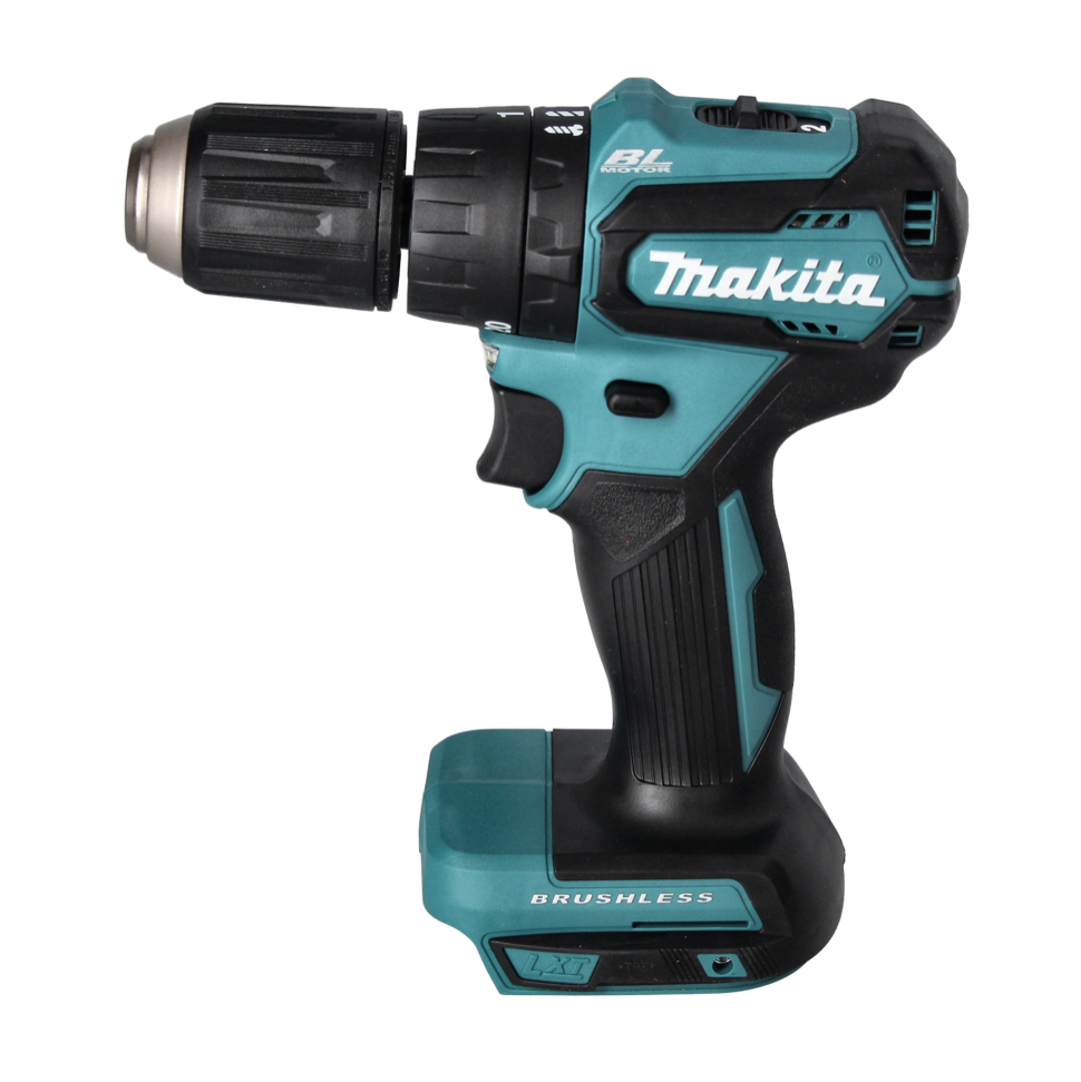 L'avvitatore a percussione a batteria Makita DHP 483 Z è dotato di meccanismo di percussione disinseribile, rotazione avanti/indietro e controllo elettronico della velocità. La coppia è regolabile su 20 livelli più il livello di foratura. L'impugnatura ergonomica gommata e il design compatto garantiscono una presa sicura e un lavoro confortevole. Il motore brushless integrato funziona in modo efficiente e praticamente senza usura. Un LED integrato garantisce una visibilità ottimale al buio