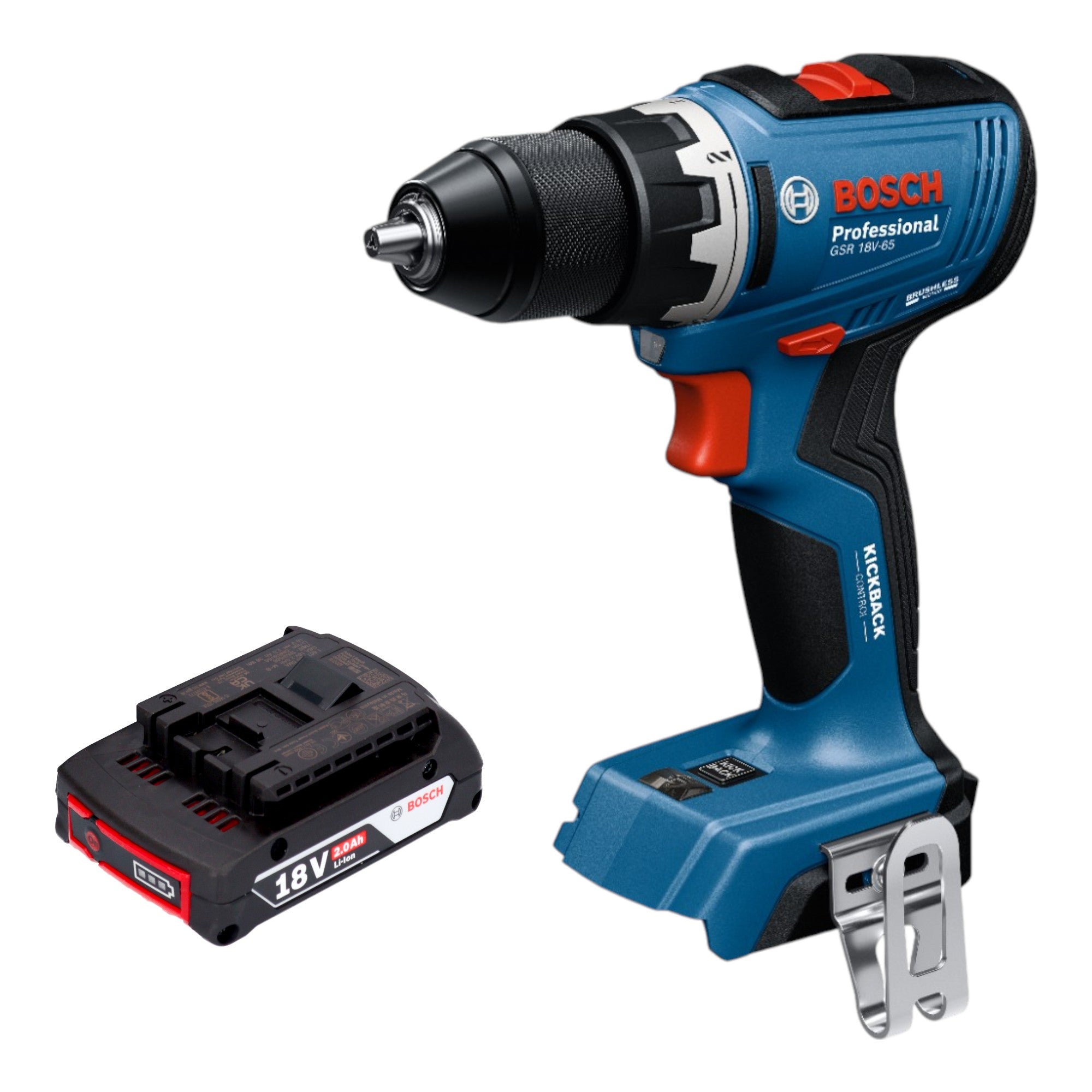 Bosch GSR 18V-65 Professional Akku Bohrschrauber 18 V 63 Nm Brushless + 1x Akku 2,0 Ah - ohne Ladegerät