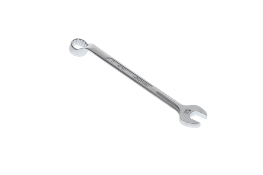 CV-Stahl · verchromt · mit gleichen Schlüsselweiten · Ringseite gekröpft und 10° abgewinkelt, Maulstellung 15° DIN 3113 Form B / ISO 3318 / ISO 7738