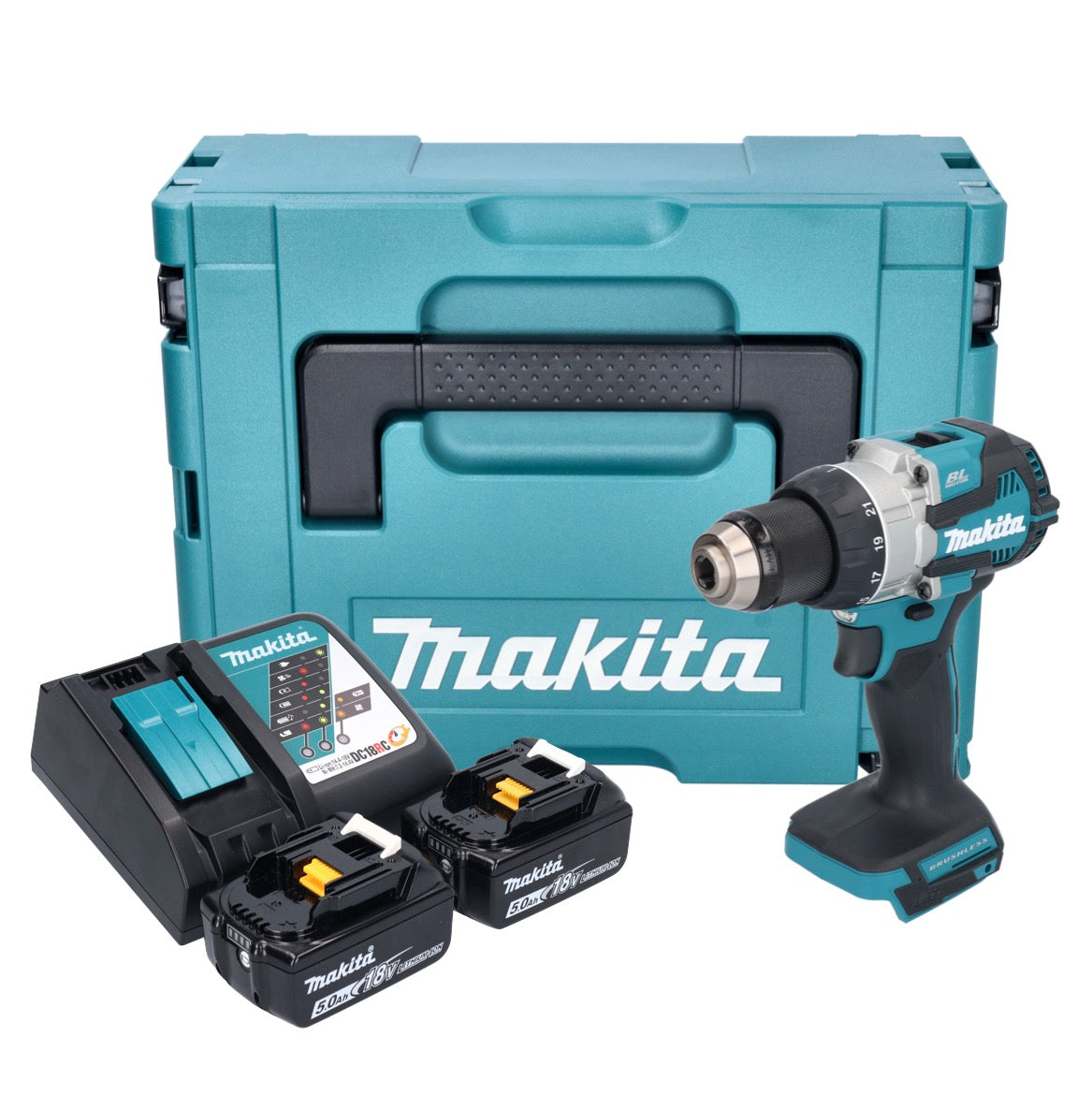 Makita DDF 489 RTJ Akku Bohrschrauber 18 V 73 Nm Brushless + 2x Akku 5,0 Ah + Ladegerät + Makpac