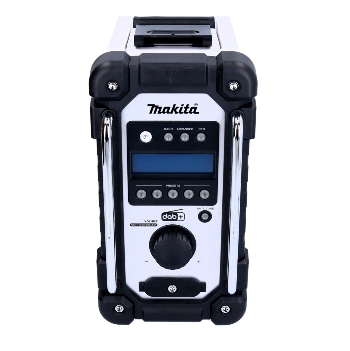 Das neue Makita DMR 110 NW ist ein kompaktes Baustellenradio mit leichten Design mit einem Tragegriff, der einen einfachen Transport ermöglicht. Es ist robust und verfügt über Stoßstangen und Metallrohre, die vor Beschädigungen schützen. Es ist ein IP64 klassifiziertes Radio, das DAB/DAB+ und FM/AM empfangen kann. Dank des LCD-Displays ist es einfach, die verschiedenen Sender zu finden und zu wechseln. Dank des AUX-Eingangs können Sie Musik von einem externen Gerät abspielen. Mit einer Akkuladung eines 6,0 Ah Akkus können Sie bis zu 32 Stunden Musik hören. Mit dem Makita Baustellenradio genießen Sie jetzt ein komfortables Hören auf der Baustelle oder unterwegs. Die Firma Makita ist ein führender Hersteller für Elektrowerkzeuge aller Art, der sich vor allem durch seine hohe Verarbeitungsqualität und sein riesiges 18 V Ökosystem auszeichnet.