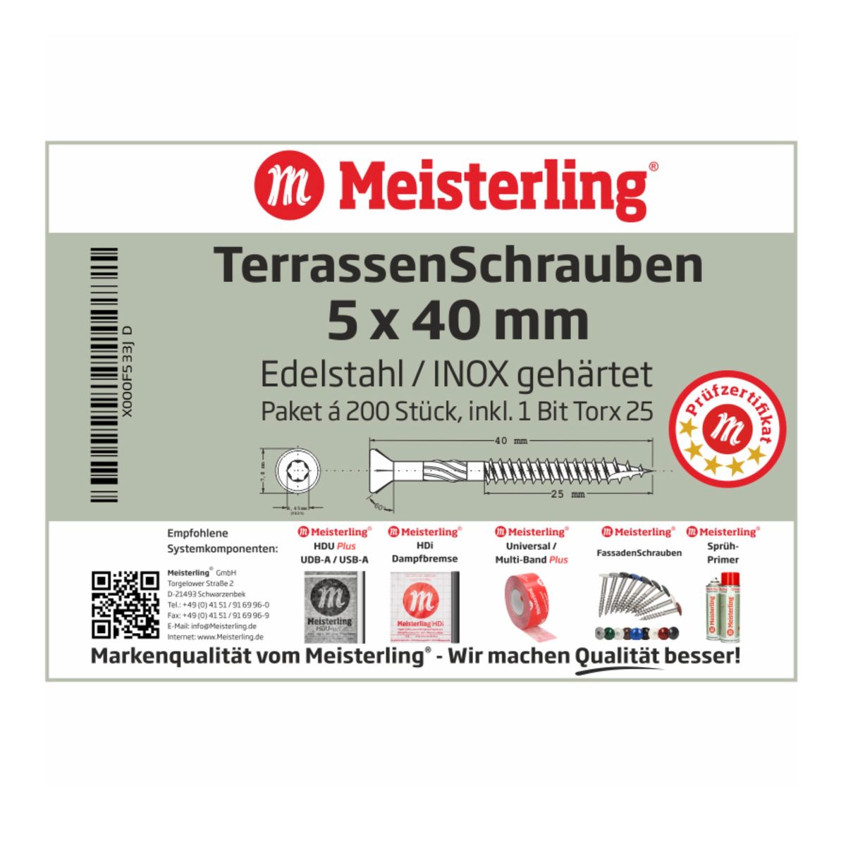 - 1200x Meisterling Terrassenschrauben 5 x 40 mm ( 6x 010010000001 )