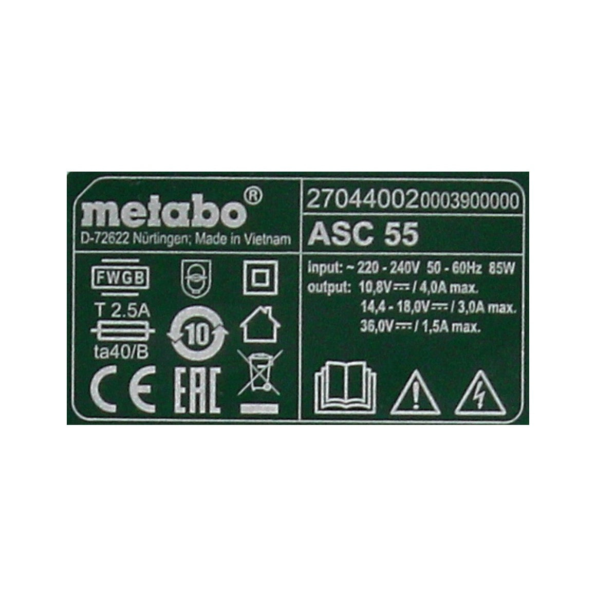 - 1x Metabo Ladegerät ASC 55 ( 627044000 )