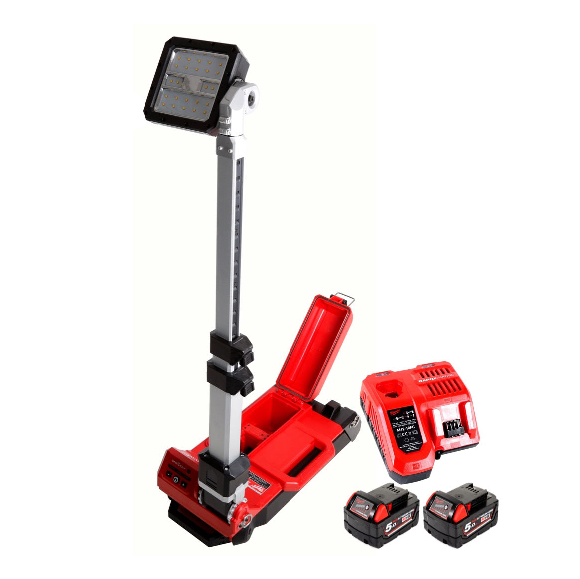 Milwaukee M18 ONERSAL-502C ONE-KEY LED Akku Baustrahler 18 V Li-Ion + 2 x 5,0 Ah Akku + Ladegerät