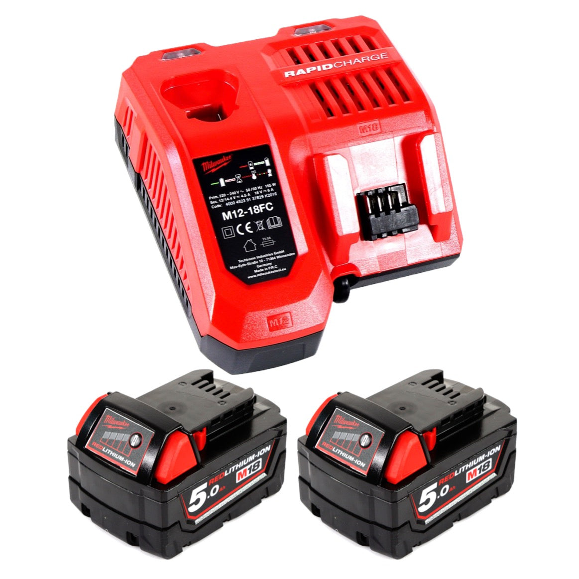 - 2x Milwaukee M18 B5 18 V 5,0 Ah Li-Ion Akku