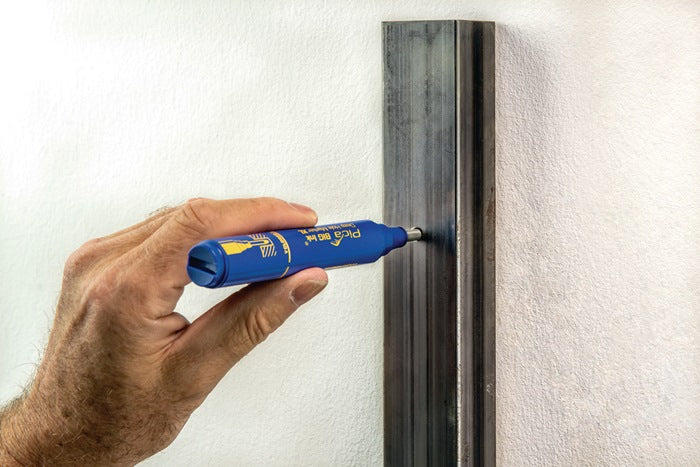 mit Tieflochmarkerfunktion · kombiniert kräftige und gut sichtbare Markierungen mit punktgenauem Anzeichnen, sogar durch Bohrlöcher ab Ø ≥ 5 mm hindurch · geeignet für alle glatten und trockenen Oberflächen wie z. B. für Glas, Metall, Kunststoff, Kartonage, Folien · weiche und formstabile Spezialspitze · Ein-Hand-Bedienung (der Köcher bleibt stets an der Hose stecken, die zweite Hand bleibt frei zum Halten des Werkstücks) · die "TWIST & REVIVE" Schreibspitze kann im nu komplett gedreht werden (ermöglicht die schnelle Wiederbelebung nach unsachgemäßer Nutzung) · großer XL-Tintenvorrat · das Griffrohr aus Edelstahl ermöglicht den Schreibdocht zu drehen, ohne die Finger mit Tinte zu verschmutzen Besonderheiten Schriftfarbe blau: sofort wasser- und wischfest · Tinten auf Alkoholbasis · licht- und wetterbeständig · mit Spiritus von glatten Flächen entfernbar · Tinten frei von Xylol und Toluol Hinweis: der Marker sollte stets Horizontal liegend aufbewahrt werden