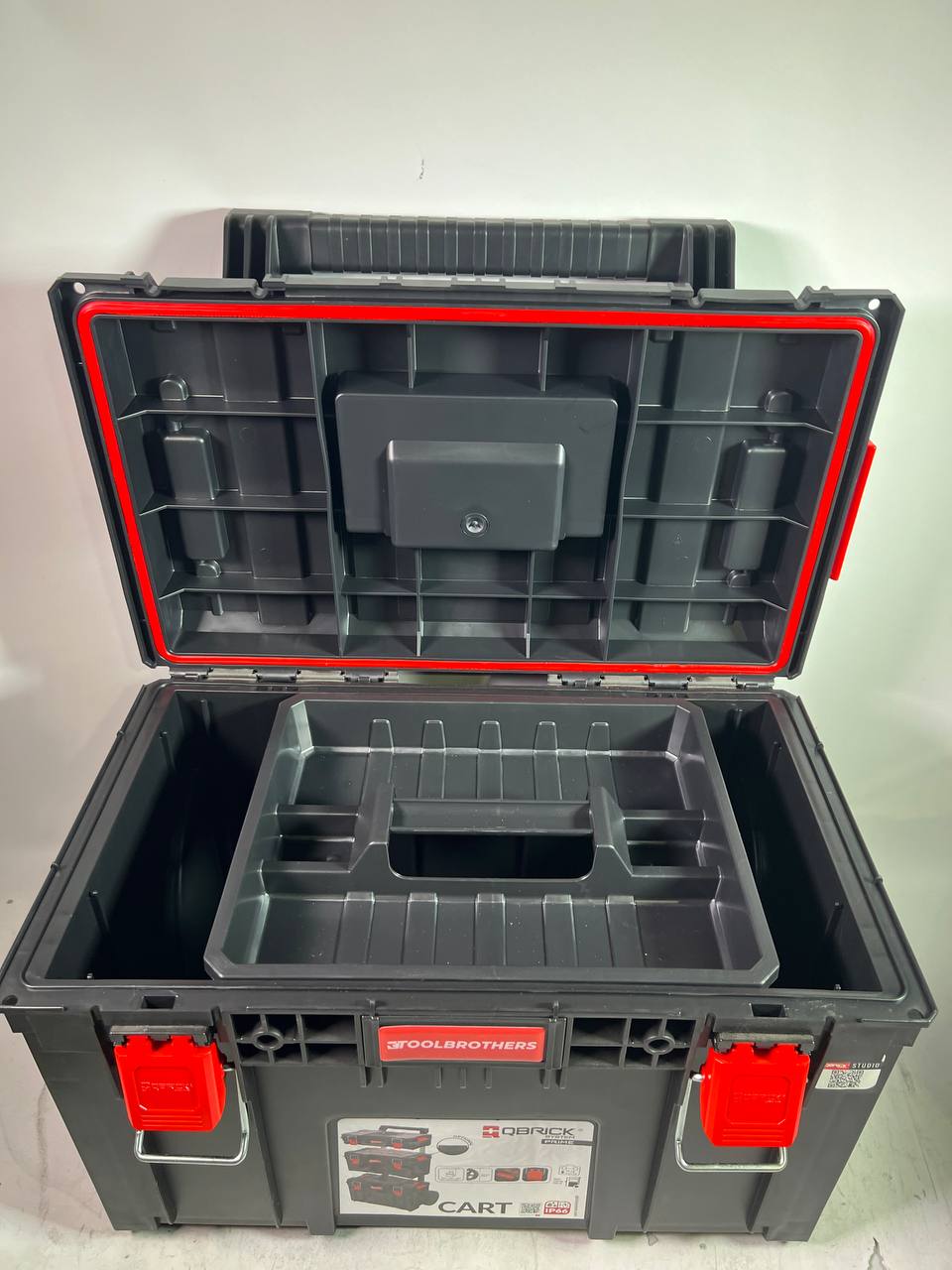 - 1x Qbrick System PRIME Cart Trolley stapelbar 590 x 425 x 660 mm 37 l IP66 mit Doppelteleskopstiel aus Aluminium