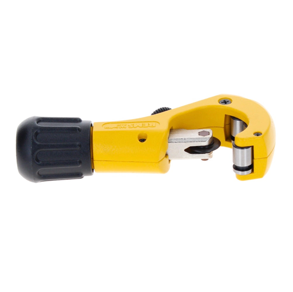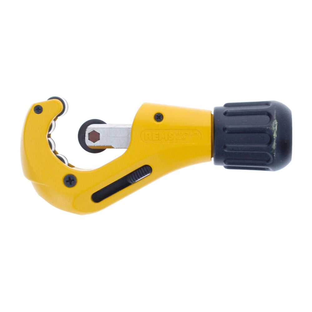 Der REMS RAS CU-INOX 3-35 Rohrabschneider ist zum Schneiden von Rohren diverser Materialien geeignet. Mit Ihm lassen sich Kupferrohre, dünnwandige nichtrostende Stahlrohre und dünnwandige Stahl-, Aluminium- und Messingrohre trennen. Das Schneidrad ist speziell gehärtet und aus dem bewährtem, zähhartem REMS Schneidbackenstahl gefertigt. Dadurch sind saubere Schnitte und eine lange Standzeit gesichert. Dank des integrierten Rohrentgraters ist kein Werkzeugwechsel nötig und spart so Zeit und Geld. REMS ist ein führender Hersteller von Werkzeugen zur Rohrverarbeitung, eine lange Tradition sowie eine stets gute Verarbeitungsqualität zeichnen das Unternehmen aus.