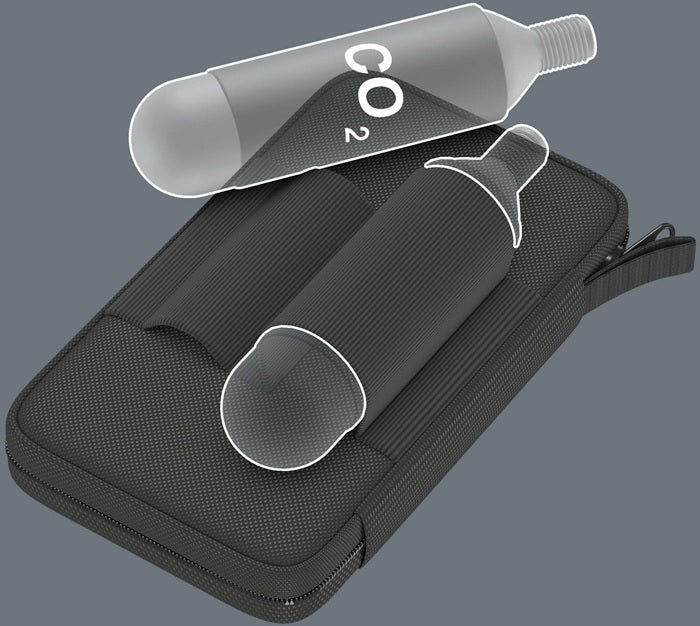 - Lieferung mit kompakter Tasche mit oberflächenschonendem Außenmaterial und Softtasche zum Mitnehmen einzelner Werkzeuge im Trikot
