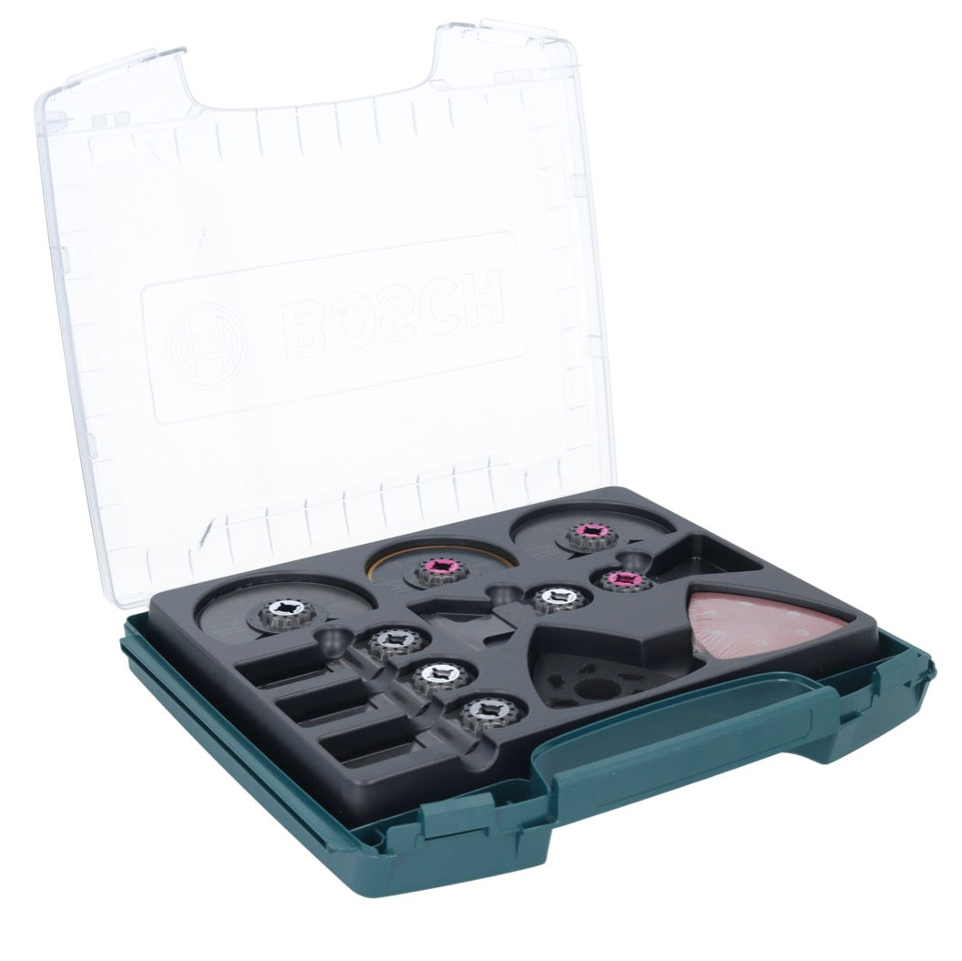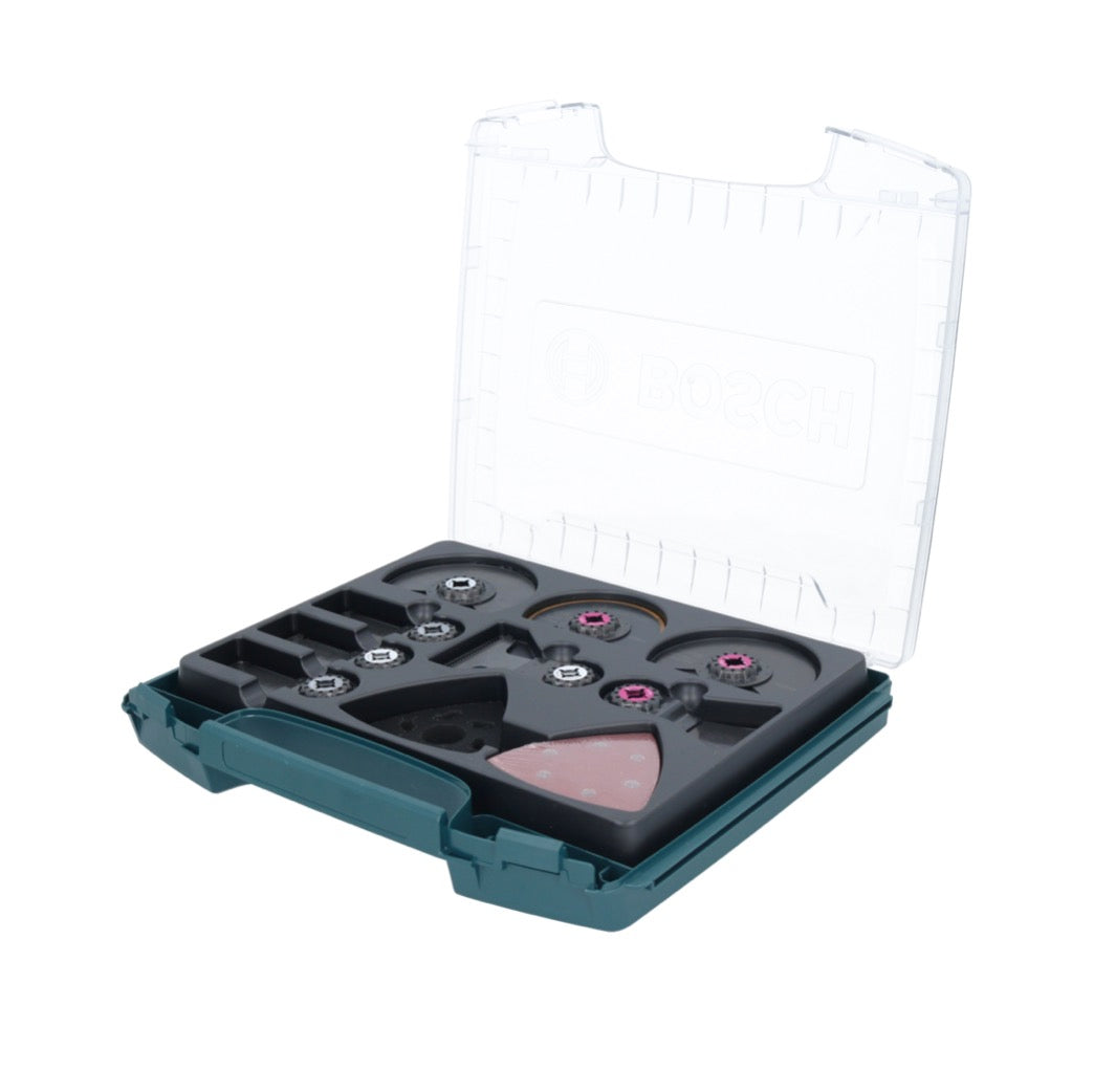 Das Innenausbau Pro-Set ist ein umfassendes Universalset und beinhaltet 34 Starlock-Zubehöre, ideal zum Sägen, Tauchschnitte ausführen, Schleifen und Schaben verschiedener Materialien. Für sicheren Transport und einen schnellen Überblick sind die Zubehöre in einer transparenten i-BOXX, jedes in seinem eigenen Fach, untergebracht. Ein herausragendes Merkmal ist das Starlock-Aufnahmesystem, welches einen raschen Blattwechsel ohne direkten Blattkontakt in nur drei Sekunden ermöglicht. Durch die dreidimensionale Passform des Systems wird eine optimale Kraftübertragung zwischen Maschine und Zubehör sichergestellt. Dieses Set ist mit allen Elektrowerkzeugen des Typs Starlock, Starlock Plus, Starlock Max und gängigen Multifunktionswerkzeugen kompatibel.