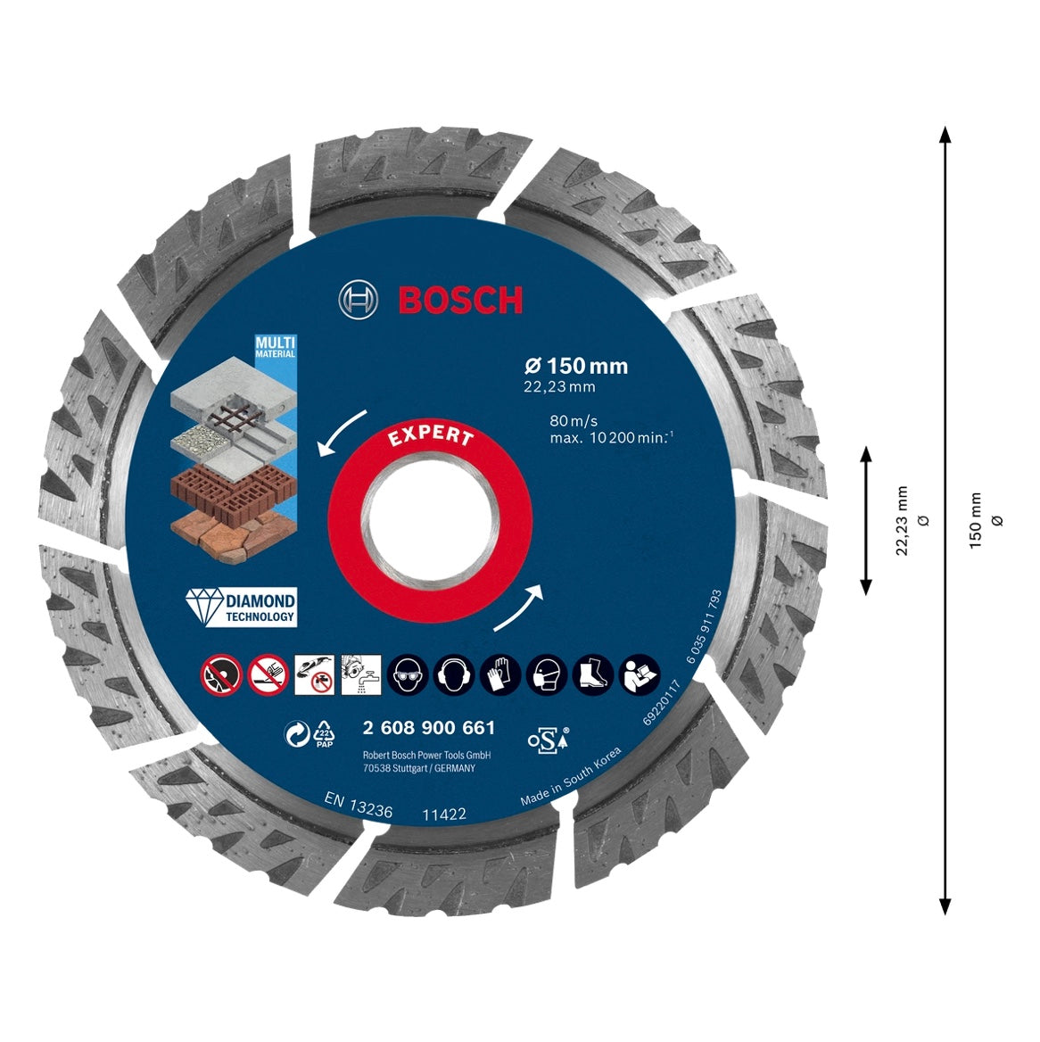 - 1x Diamentowa tarcza tnąca Bosch EXPERT MultiMaterial 150 x 22,23 mm