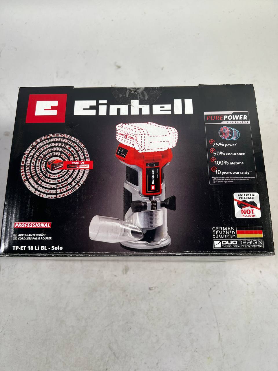 Akumulatorowa frezarka górnowrzecionowa Einhell Professional TP-ET 18 Li BL z rodziny Power X-Change oferuje maksymalną mobilność i moc do wszystkich zadań związanych z obróbką drewna, niezależnie od gniazdek elektrycznych. Wyposażona w wydajny silnik bezszczotkowy Einhell PurePOWER, ta frezarka krawędziowa zapewnia większą moc i dłuższy czas pracy w porównaniu z konwencjonalnymi silnikami i jest objęta 10-letnią gwarancją po rejestracji online. Prędkość można regulować bezstopniowo, co umożliwia elastyczną obróbkę. Frezarka posiada precyzyjną regulację głębokości frezowania i tuleje zaciskowe do frezów 6 i 8 mm, dzięki czemu jest bardzo wszechstronna. Urządzenie imponuje wysokiej jakości aluminiową konstrukcją, która umożliwia precyzyjną pracę, a także dodatkowymi funkcjami, takimi jak blokada wrzeciona, oświetlenie robocze LED i plastikowa wkładka chroniąca powierzchnie. Wyposażona w ergonomiczny uchwyt Softgrip frezarka krawędziowa zapewnia wygodną obsługę. Zakres dostawy obejmuje przydatne akcesoria, takie jak prowadnica wzdłużna, końcówka kompasu, rolka prowadząca, tuleja kopiująca i narzędzie, a także adapter ssący, który pasuje do odkurzaczy Einhell do pracy na mokro / sucho. Należy pamiętać, że akumulator i ładowarka nie wchodzą w skład zestawu i można je nabyć oddzielnie jako część zestawu startowego PXC.