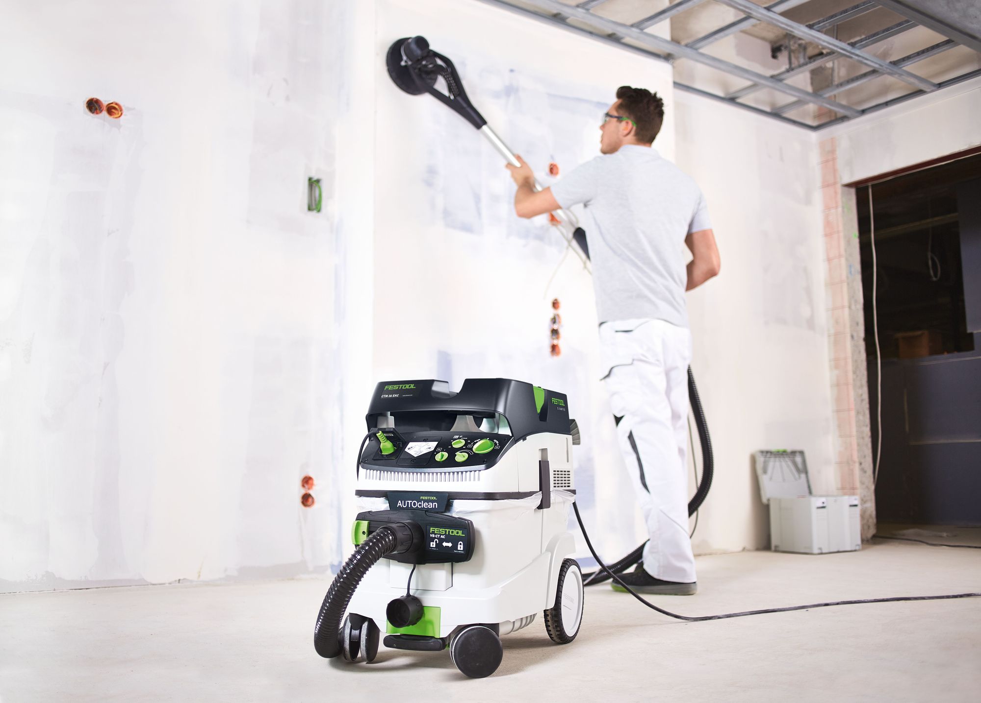 Beim Schleifen im Trockenbau entstehen große Mengen an Schleifstaub. Die Verwendung eines hierfür geeigneten Absauggeräts ist daher bei dieser Anwendung obligatorisch. Festool bietet passend zum neuen Langhalsschleifer PLANEX easy mit dem AutoClean Spezialsauger das perfekte Absaugmobil mit automatischer Hauptfilterabreinigung und knickfestem Saugschlauch.#$#Denn sauberes Arbeiten ist wichtig: für den Schutz der Gesundheit und reibungslose Arbeitsprozesse mit präzisen Ergebnissen.