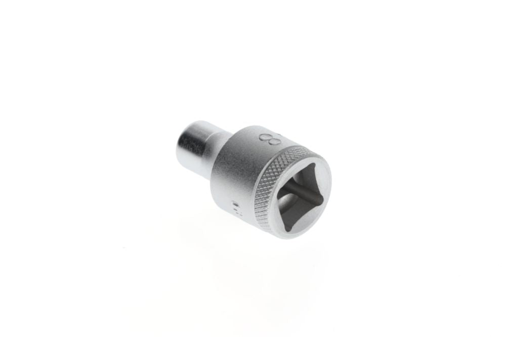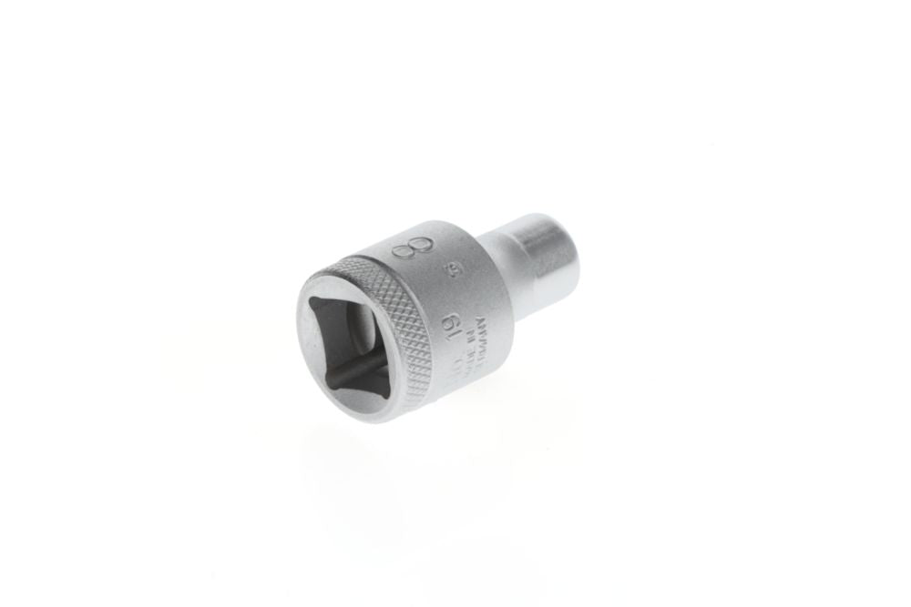 Napęd kwadratowy 12,5 mm (1/2″) - sześciokąt - stal wanadowa - chromowany - radełkowany - z rowkiem na kulkę - DIN 3124 / ISO 2725-1 napęd kwadratowy wg DIN 3120-C 12,5 / ISO 1174