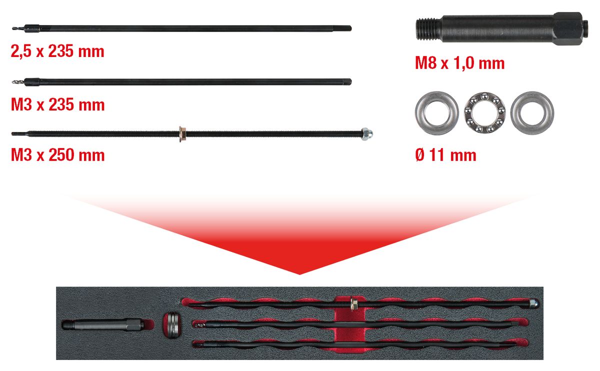 • universales Reparatursystem für abgerissene Glühkerzenspitzen der Größe M8 x 1,0