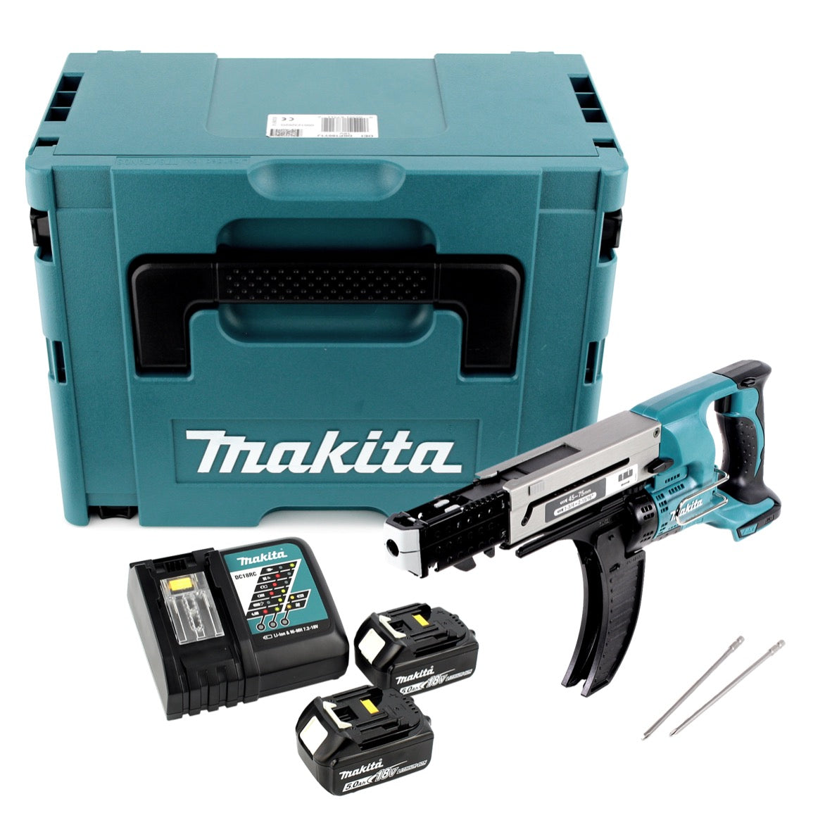Makita DFR 750 RTJ akumulatorowa wkrętarka z magazynkiem 18V 45-75mm + 2x akumulator 5,0Ah + ładowarka + Makpac
