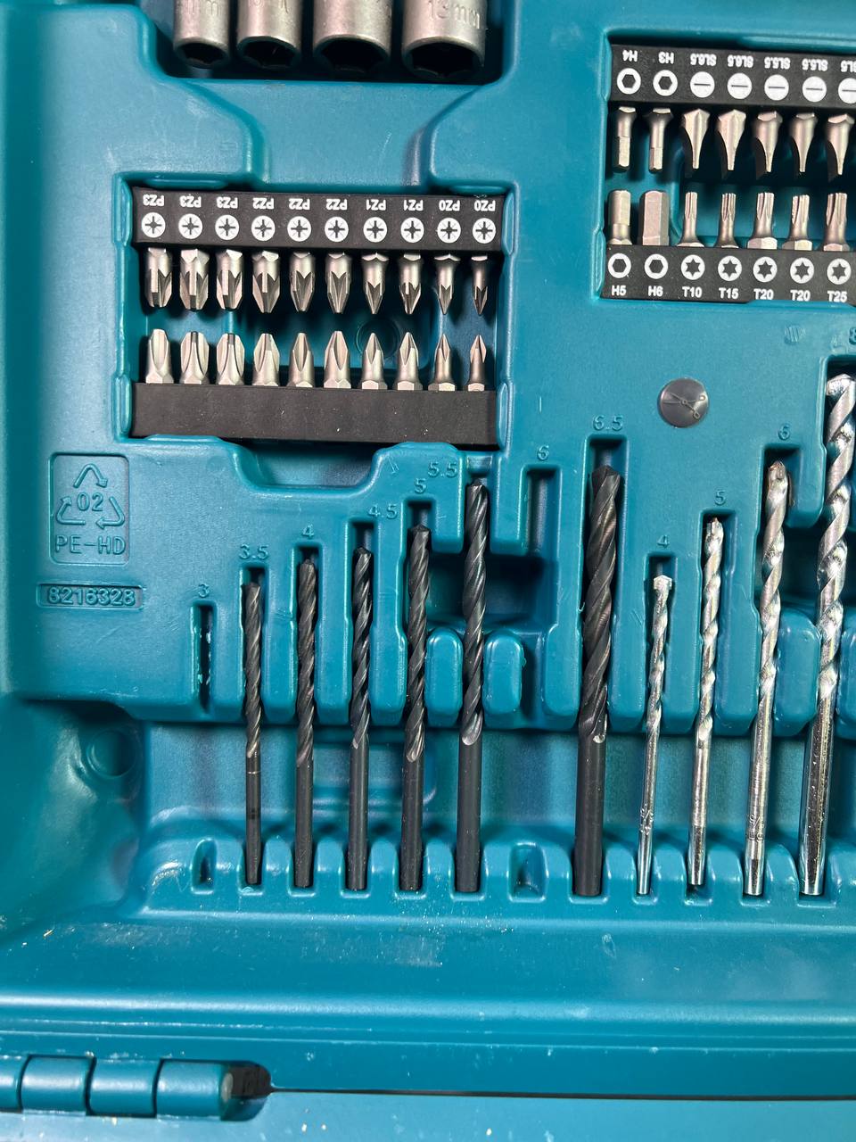 Makita HP 488 DAEX1 Akku Schlagbohrschrauber 18 V 42 Nm G-Serie + 2x Akku 2,0 Ah + Ladegerät + . Zubehörset + Koffer - Unvollständig