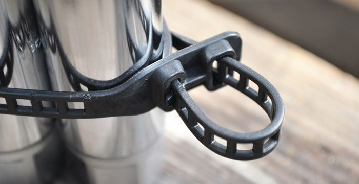 odłączany - wykonany z miękkiego, odpornego na rozdarcia termoplastycznego poliuretanu - jego odporność na promieniowanie UV i warunki atmosferyczne umożliwia delikatne wiązanie - rozprzestrzenianie ognia jest zgodne z UL94 HB - temperatura pracy - 40 °C do + 85 °C dostarczany w torebce foliowej