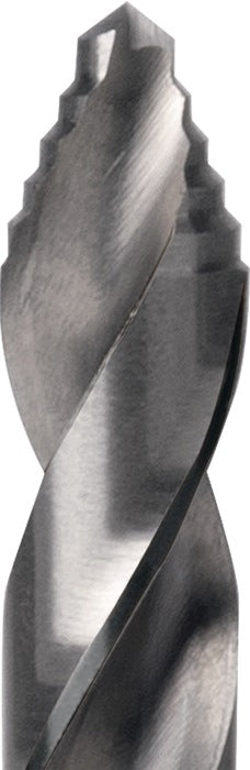 HSS-Co5 - DIN 338 - ostrze FLOWSTEP® - kąt wierzchołkowy 118° - cięcie prawoskrętne - chwyt 3-ostrzowy - precyzyjne centrowanie bez przebijania, nawet na okrągłych powierzchniach, takich jak rury wiercenie dużych średnic bez wstępnego nawiercania - łatwy i płynny proces wiercenia, bez zakleszczania się w materiale - 3-stronny chwyt zapobiega obracaniu się w uchwycie wiertarskim - idealne do użytku w ręcznych elektronarzędziach - do metali nieżelaznych, stali konstrukcyjnych i węglowych, stali wysokostopowych (np. V2A/V4A), stali narzędziowych, stopów magnezu, tworzyw sztucznych, a także aluminium, pleksiglasu i drewna