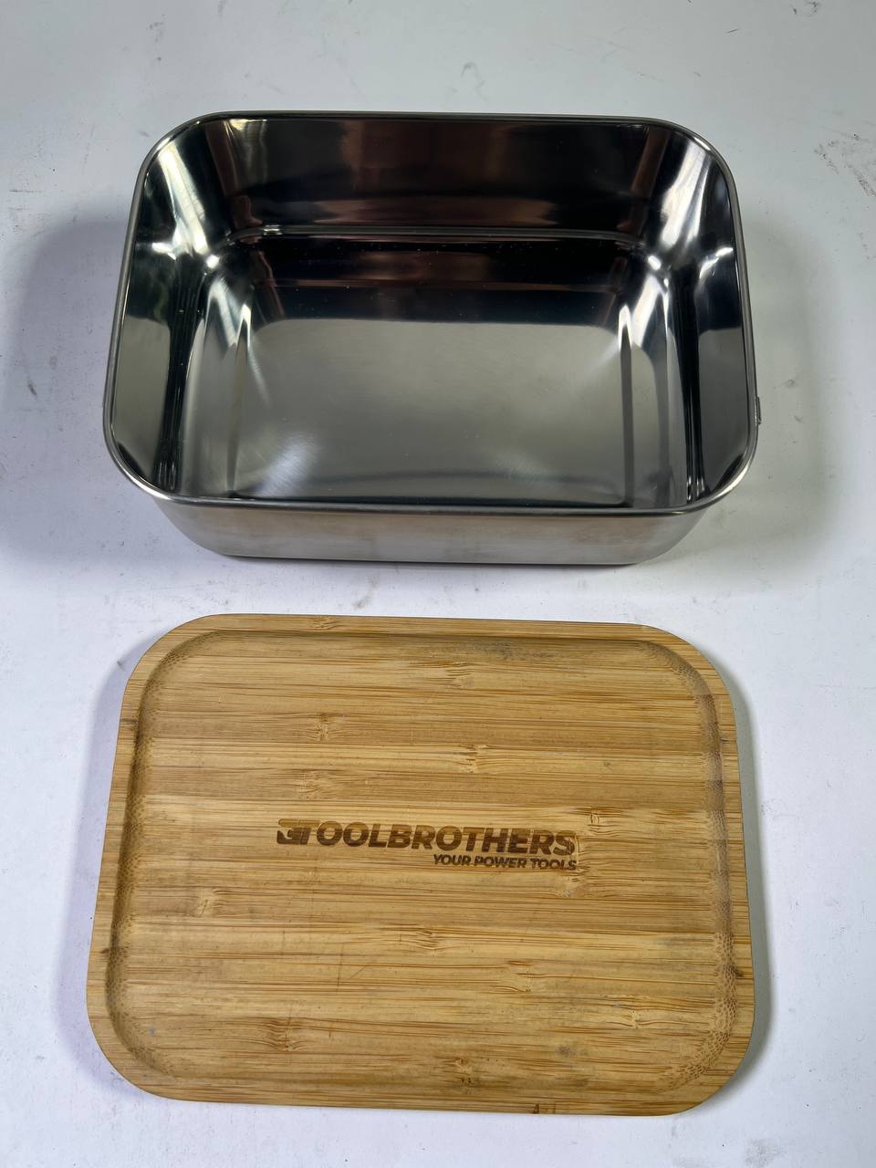 Wysokiej jakości przetworzony pojemnik na lunch od Toolbrothers jest idealnym towarzyszem dla każdego głodnego rzemieślnika. Wyselekcjonowane materiały zapewniają długą żywotność i wysoką odporność. Dzięki łatwo dostępnym narożnikom płukanie nie stanowi problemu. Regulowana przegroda może być łatwo ustawiona w zależności od potrzeb. Pokrywa wykonana jest z wysokiej jakości bambusa. Pomysłowe zamknięcie uchylne ze stali nierdzewnej również zapewnia długą żywotność. Toolbrothers to start-up, który postawił sobie za zadanie uczynienie narzędzi wszelkiego rodzaju porównywalnymi.