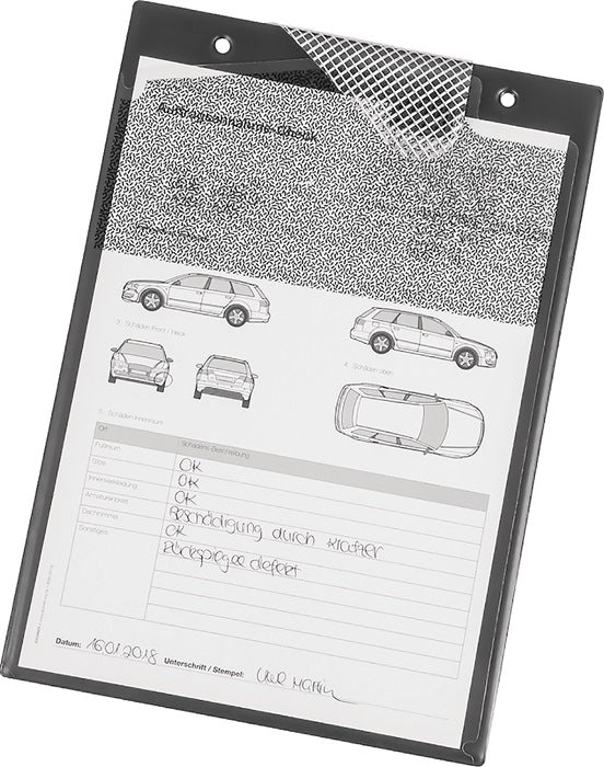 DIN A4 - wyjątkowo wytrzymała konstrukcja z zapięciem na rzep - przód z przegrodą na klucze i specjalnym nadrukiem zapobiegającym czytelności (spełnia wytyczne ogólnego rozporządzenia o ochronie danych RODO) - tył z przegrodą na dokumenty wykonaną z folii wzmocnionej tkaniną PU = 10 szt.