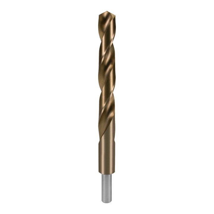 HSS-Co5 - DIN 338 - typ N - kąt wierzchołkowy 130° - profil szlifowany - prawotnące - nacięcie krzyżowe wg DIN 1412 C - z chwytem stopniowanym - w pełni szlifowane wiertło kręte ma zwiększoną koncentryczność - do stali niestopowych i stopowych (wytrzymałość do 1100 N/mm²), stali do pracy na gorąco i na zimno, stali do ulepszania cieplnego i stali utwardzanych powierzchniowo, a także stali nierdzewnych i kwasoodpornych - idealne do wiercenia otworów o większych średnicach we wszystkich standardowych wiertłach z uchwytem do 13,0 mm