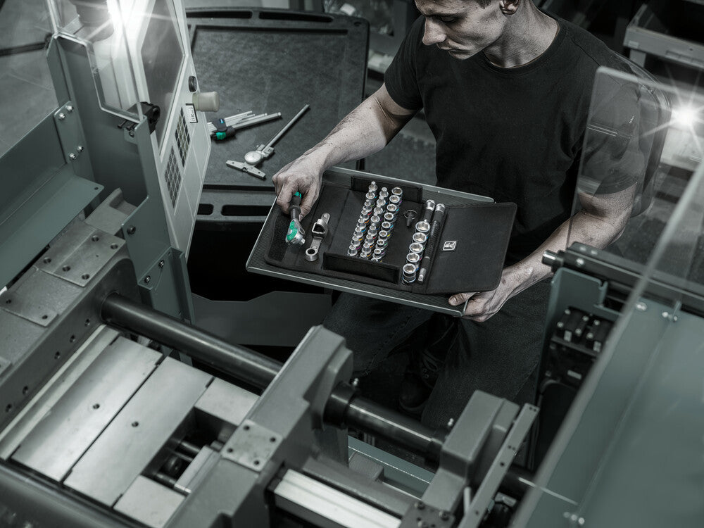 - Zawartość: 1 grzechotka obrotowo-zwrotna (72 zęby) o konstrukcji koła zamachowego z tuleją szybkomocującą 1 przedłużka chybotliwa 76 mm o kącie obrotu 15° 1 przedłużka z tuleją szybkomocującą i elastycznym systemem blokady 200 mm 1 nasadka sześciokątna po szt.Wkładka klucza nasadowego z funkcją przytrzymywania i systemem kodowania kolorami SW 6 / 7 / 8 / 9 / 10 / 11 / 12 / 13 / 14 / 15 / 16 / 17 / 18 / 19 mm* 1 wkładka klucza nasadowego z funkcją przytrzymywania i systemem kodowania kolorami do śrub z wewnętrznym profilem TORX® o rozmiarze T 10** / 15** / 20 ** / 25** / 27** / 30** / 40** / 45*** / 50*** 1 końcówka klucza nasadowego z funkcją przytrzymywania i systemem kodowania kolorami do śrub do śrub z gniazdem sześciokątnym o rozmiarze 3** / 4** / 5** / 6** / 7*** / 8*** / 9*** / 10*** mm 1 narzędzie do usuwania nakrętek 1 pasek na rzep 50 x 240 mm * długość 29 mm, ** długość 35 mm, *** długość 38,5 mm Dostarczane w kompaktowym pudełku z tekstylnym materiałem zewnętrznym